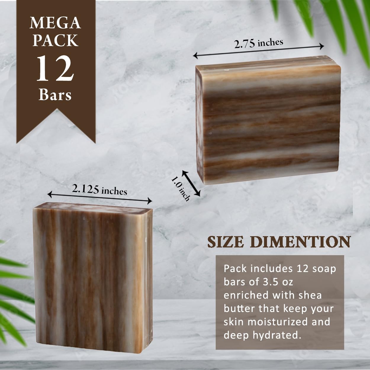 - ๐ชต Warm Sandalwood Scented Bars: A rich, woodsy sandalwood scent with earthy undertones. Loved by men for its bold character and equally appealing to women for its calming, natural aroma. Used in skincare for centuries, sandalwood helps prevent acne, deeply moisturizes skin, fights bacteria, soothes irritation and offers multiple other skin benefits. Our natural soap bars bring the timeless charm and warm aroma of sandalwood for healthy skin and a refreshing bathing experience.