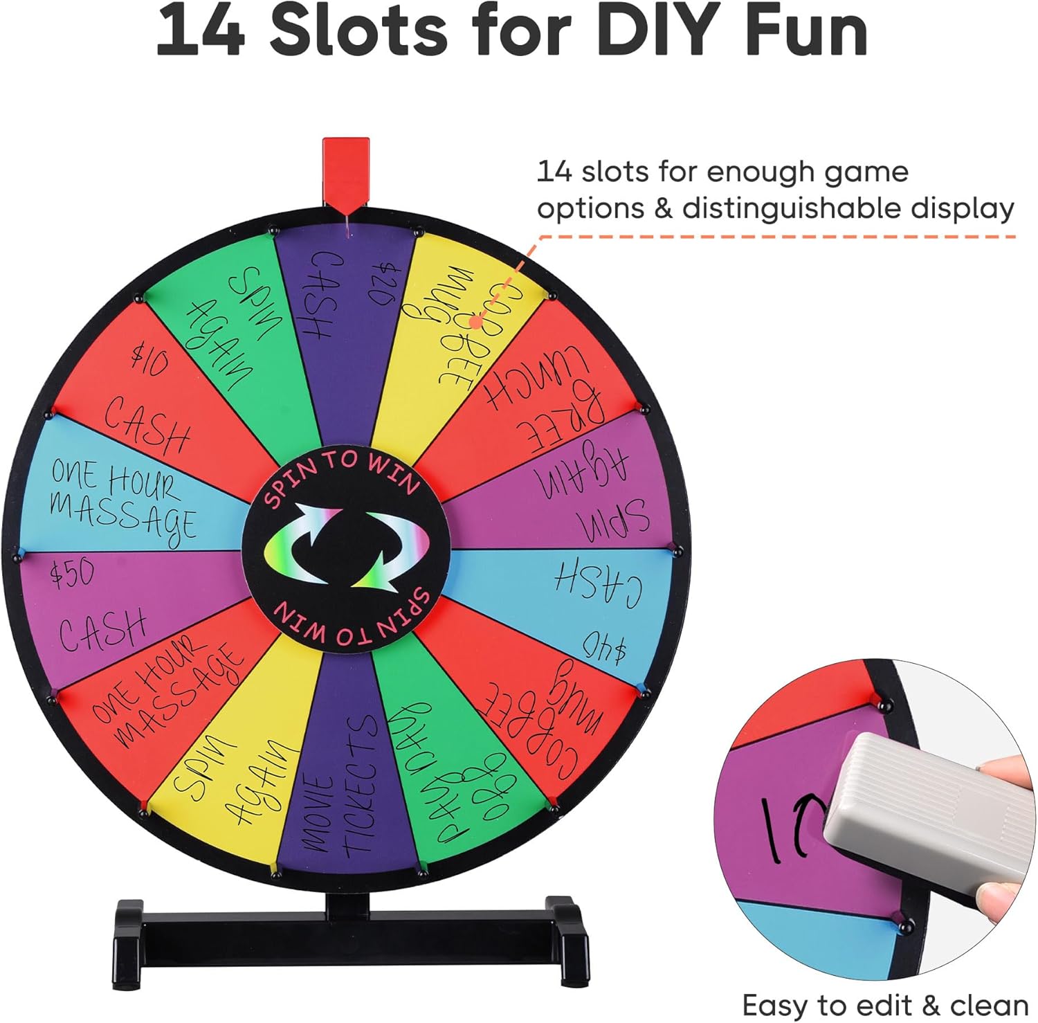 WinSpin 18" Round Tabletop Color Prize Wheel 14 Clicker Slots Heavy Duty Editable Spinning Wheel for Fortune Design Carnival Spin Game and Tradeshow, Classic Series