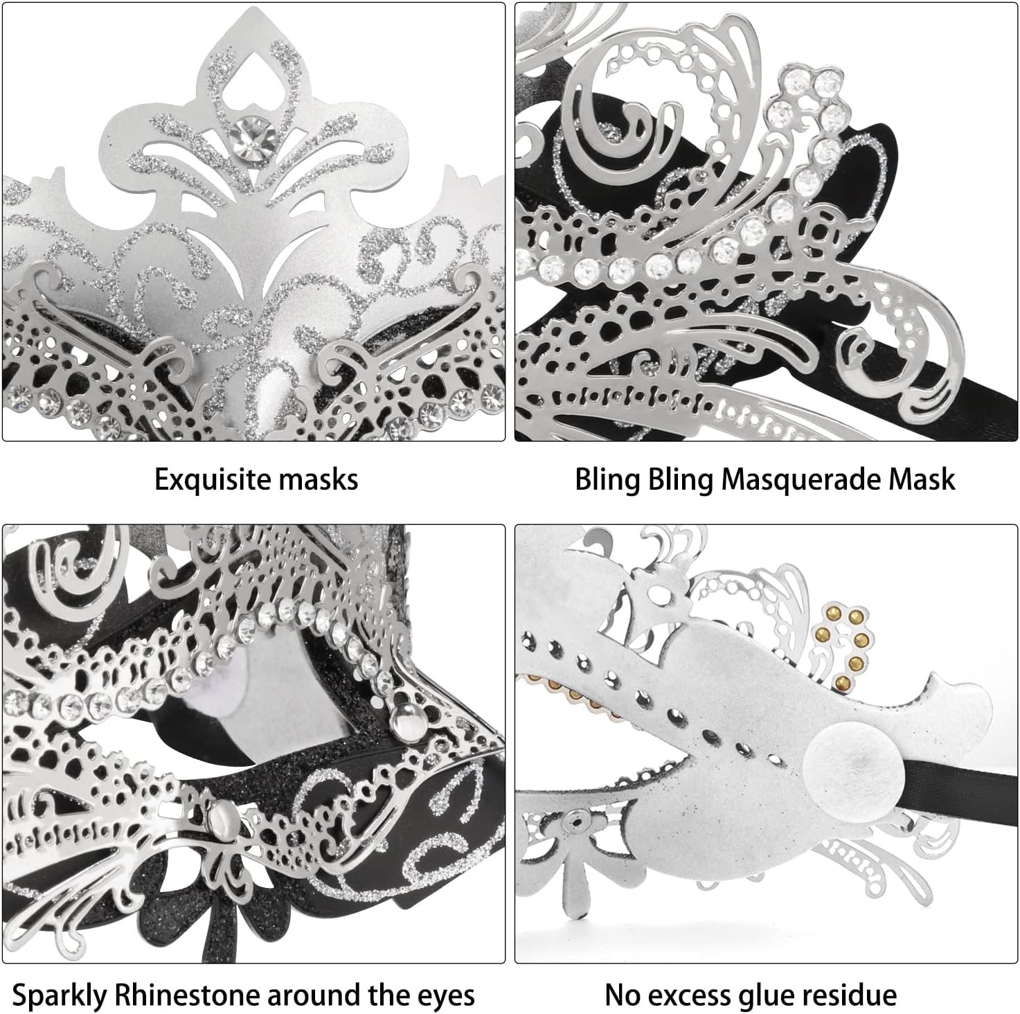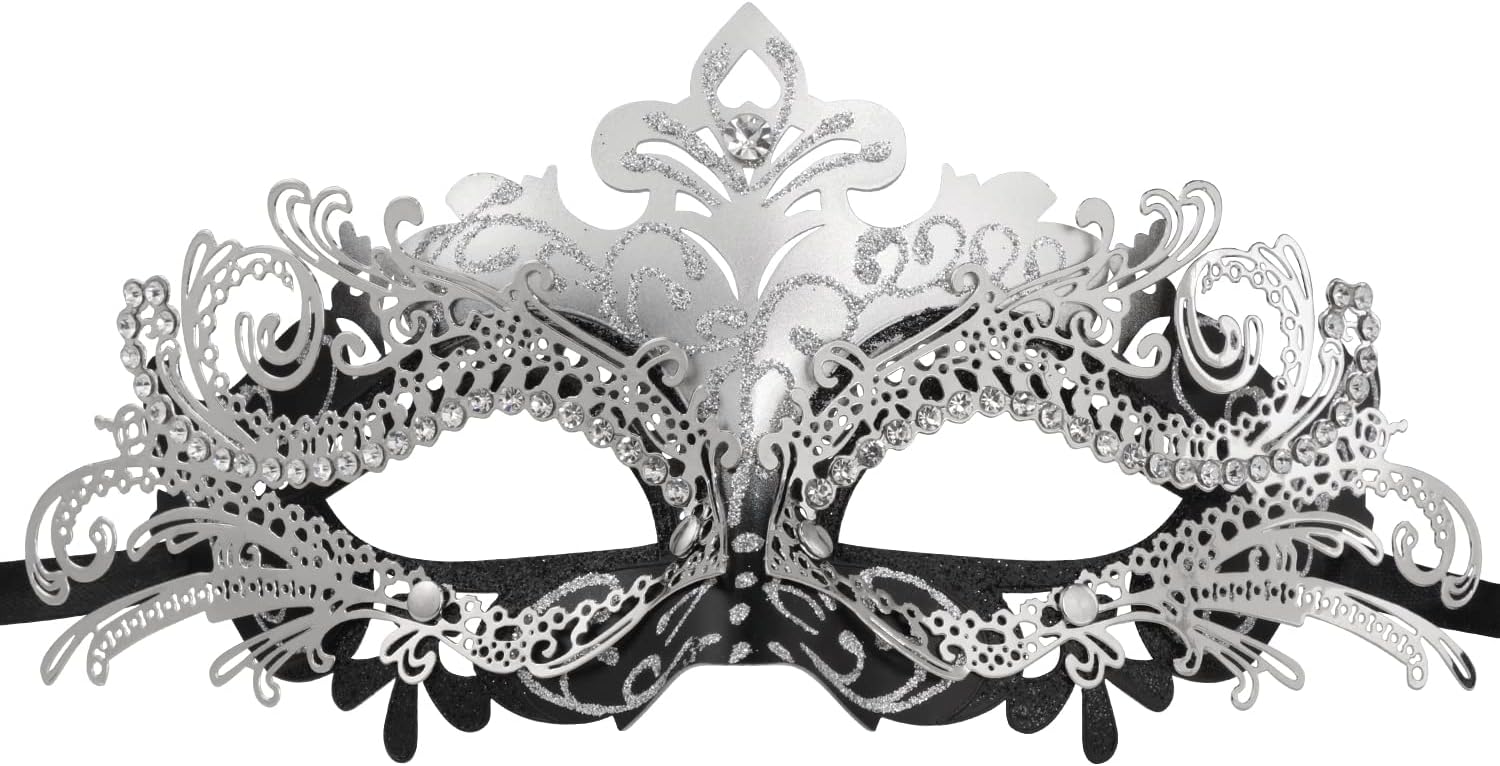 - The plastic mask can be hand adjusted for a better fit and with the straps to keep in position. The metal one is made with light weight eco-friendly metal alloy, and Decorated with Sparkling Rhinestones