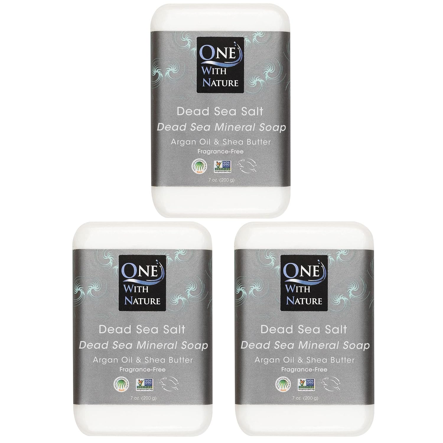 One With Nature Dead Sea Salt Soap 7oz 3-Pack – Purifying and Exfoliating Soap Bar with Dead Sea Minerals for Face & Body, for Men & Women. Unscented.