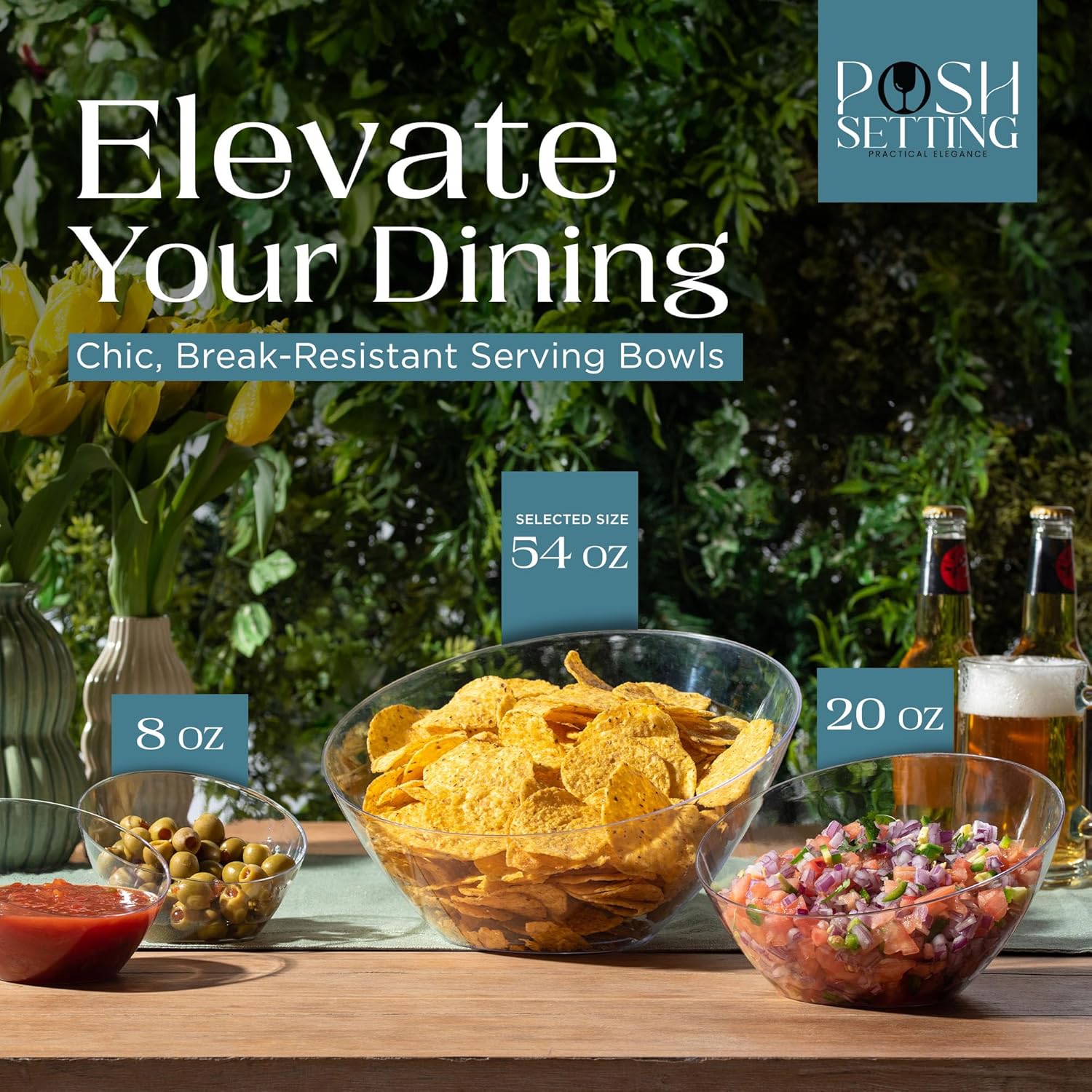Posh Setting - Clear Plastic Serving Bowls for Party Angled Bowls Disposable Chip Bowls Candy Bowls for Party Table Salad and Fruit Bowls for Party Wedding Serving Bowls-Clear, 54 OZ, 5 Pack