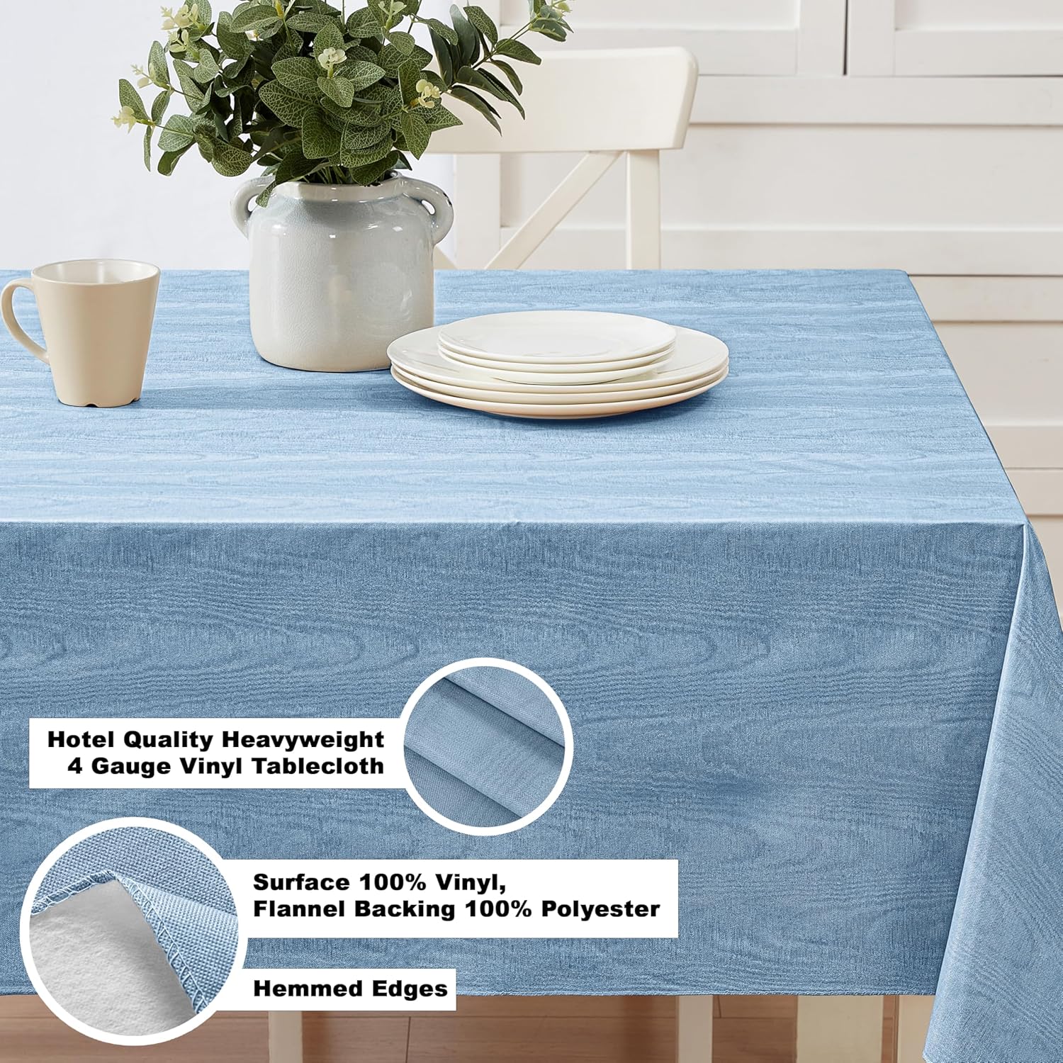 - Newbridge Vinyl Flannel Backed Tablecloth, 60 x 102 Inch Rectangle, Blue Moire Wavy Solid Design, Waterproof Heavyweight Indoor/Outdoor Table Cover, Wipe Clean Easy Care