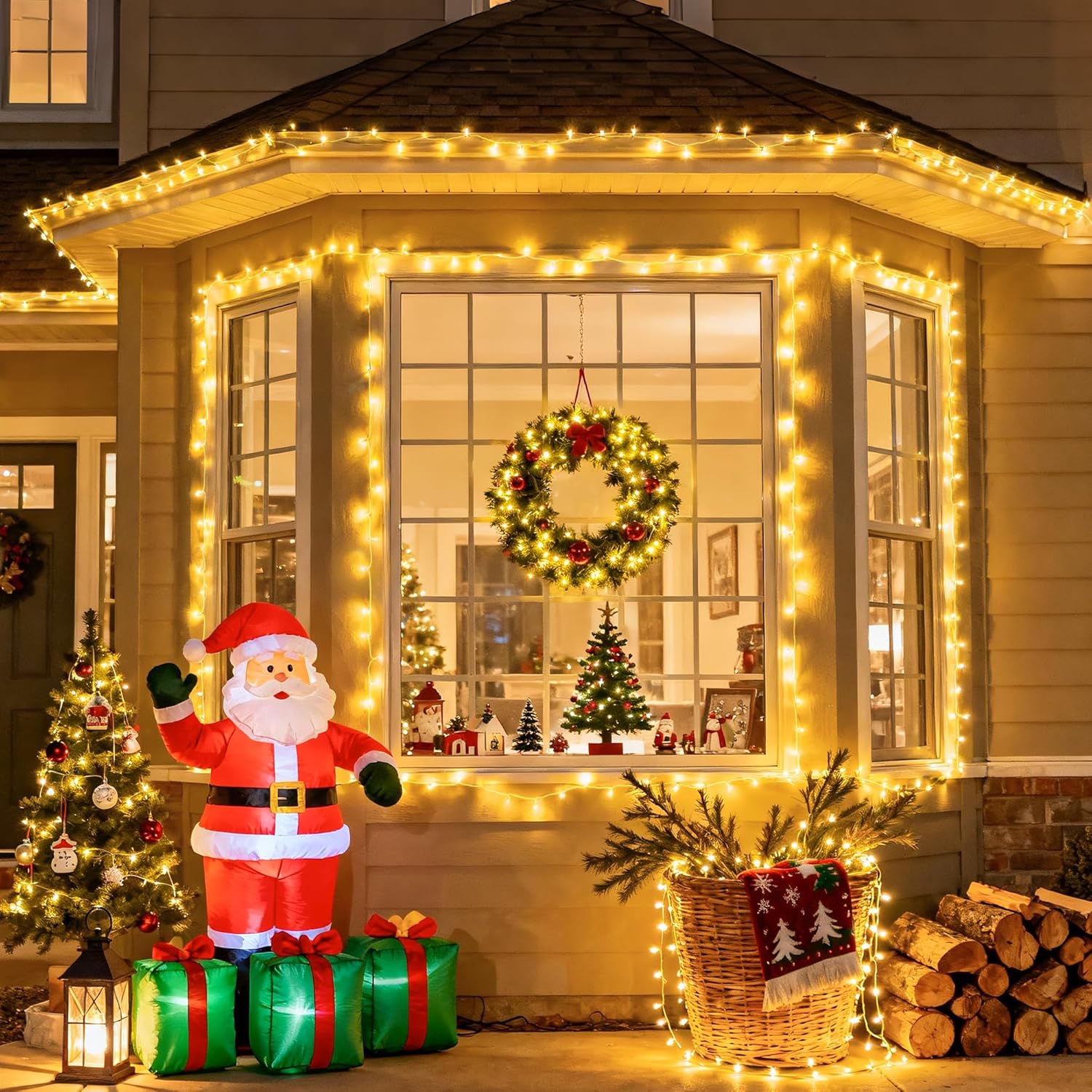 - 【LED Christmas Lights Outdoor for Decor】 Wrap Christmas lights around garlands, railings, gates, Christmas trees. Keep them up year-round in your house, garden, porch, patio or balcony, transforming every corner. With a 10-foot lead wire, you can plug the twinkle fairy string lights plug in where you need. On the gentle night, the Christmas string lights for outside illuminated the courtyard and garden, casting a glow that intertwined with the warm white Christmas tree lights from within the house.