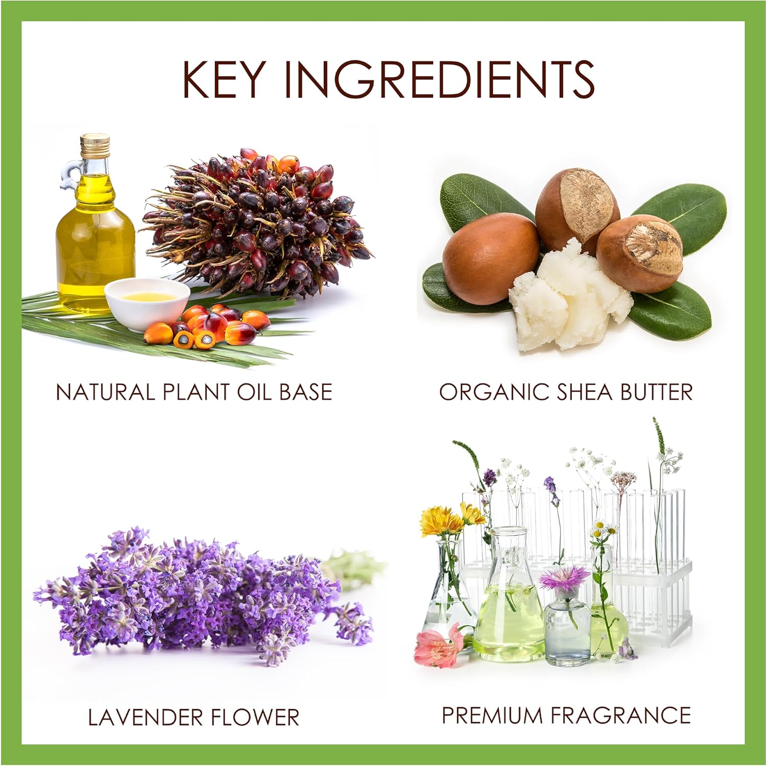 - Improve Dry Skin: This lavender shea butter bar soap is made with pure plant oils, palm oils, organic shea butter, and vegetable glycerin. Ideal for hands, face and body, our triple milled bar soap is non-drying and will leave skin soft and smooth.
