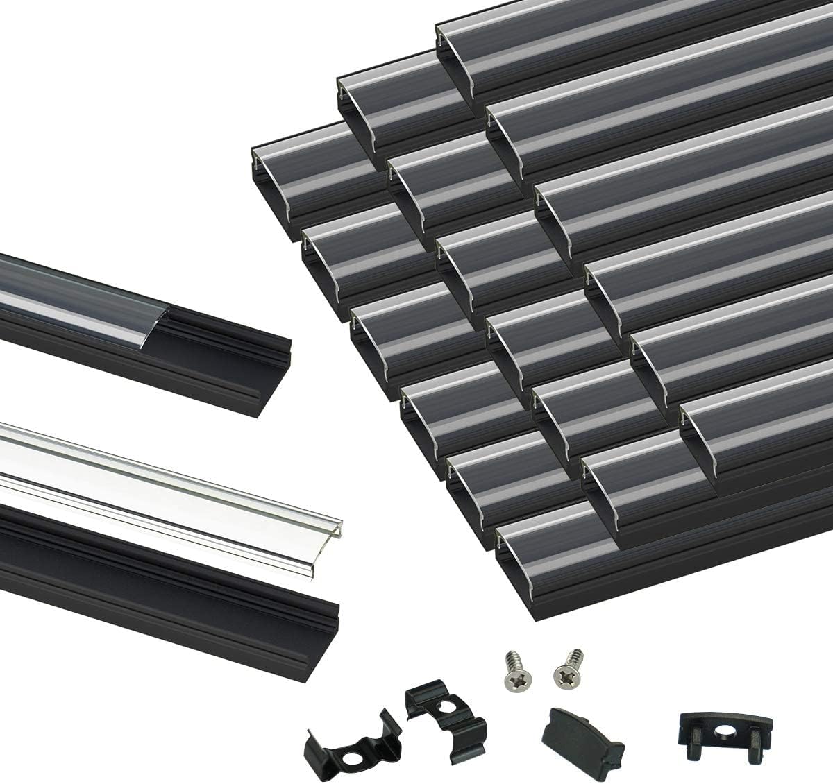 Muzata 20Pack 3.3FT/1M LED Channel Black Aluminum U Shape LED Strip Channel with Transparent Clear Cover Easy Installation with Paper User Manual U1SW BT 1M