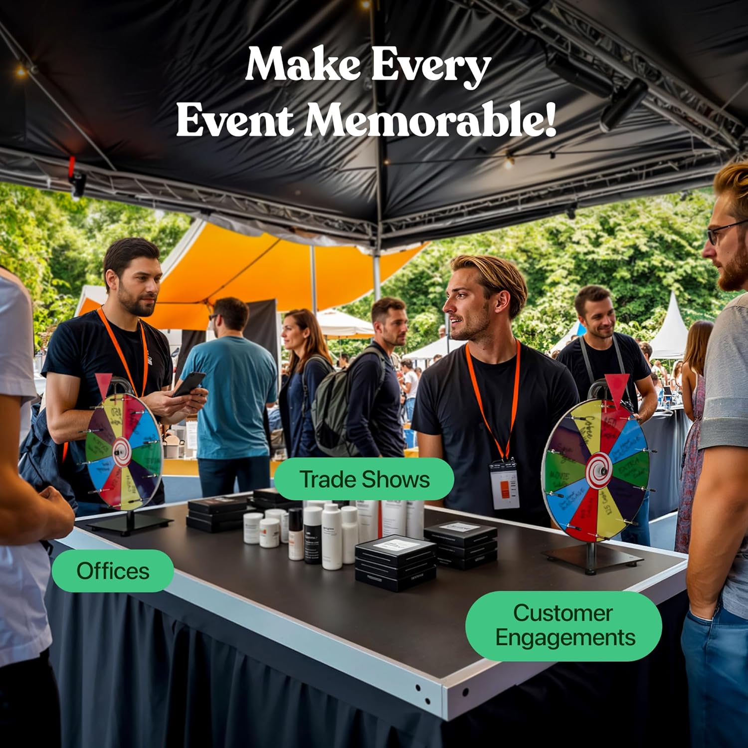 - Fun and Fair Game: The spinning wheel has durable pegs, clickers between each slot for better speed control that ensures a random spot on each spin! Perfect for fundraisers, carnivals, retail stores, company events and trade shows.