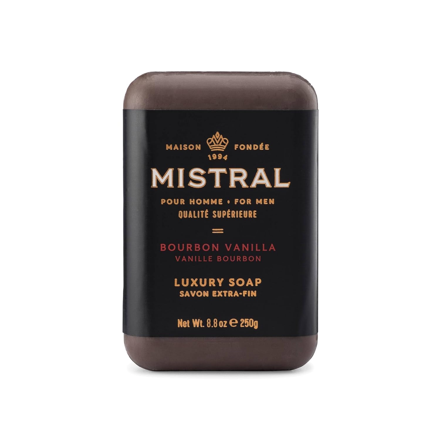 Mistral Bourbon Vanilla Luxury Bar Soap for Men | Men’s Natural Soap Bar | Paraben, Phthalates Free | Moisturizing & Triple-Milled Natural Soap for Men - Made in France | Large, 8.8 oz