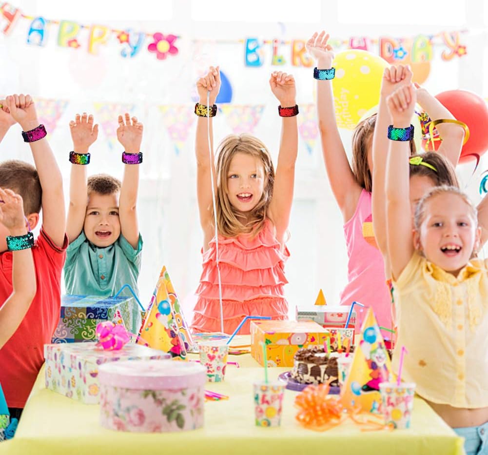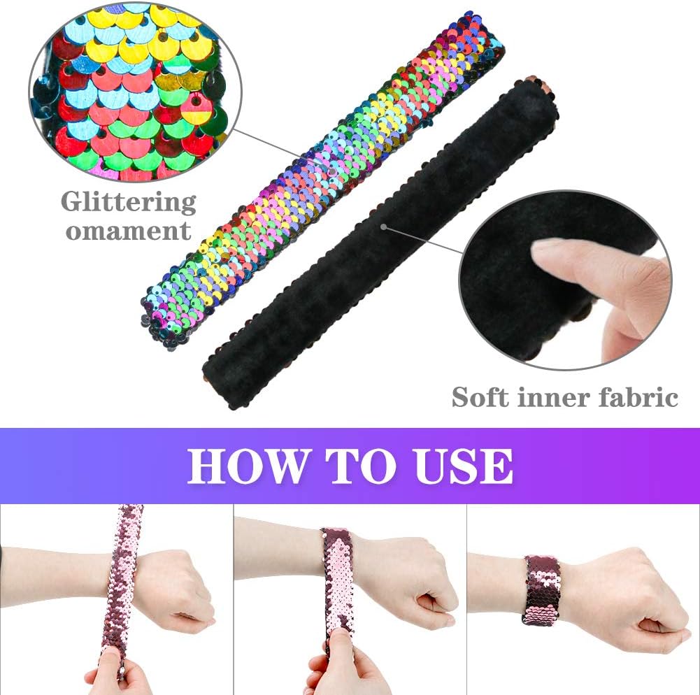 - ❤MULTI-FUNCTIONS:mermaid slap bracelets can be used as birthday party supplies,goody bag fillers,class prizes,novelty toys,festival gifts,stylish sequin wristband and hairband.