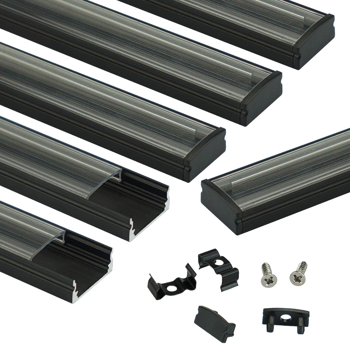 Muzata 6Pack 3.3FT/1M LED Channel Black Aluminum U Shape LED Strip Channel with Transparent Clear Cover Easy Installation with Paper User Manual U1SW BT 1M