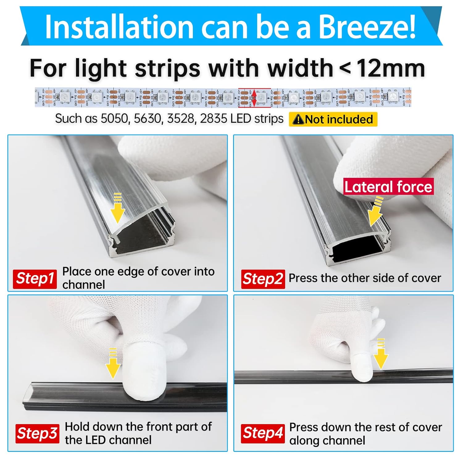 - Easy Installation: The led covers can be simply pressed into channels. They can be cut into specific lengths effortlessly by a fine-tooth hacksaw or miter saw. Building a longer lighting project, please search Muzata U1SW 2M for 6.6ft LED channel or LCB1 for extension connectors, Search LCC1 for L-shape corner adapters, Afraid of the light leaking caused by seams, search LC03 to find continuous cover