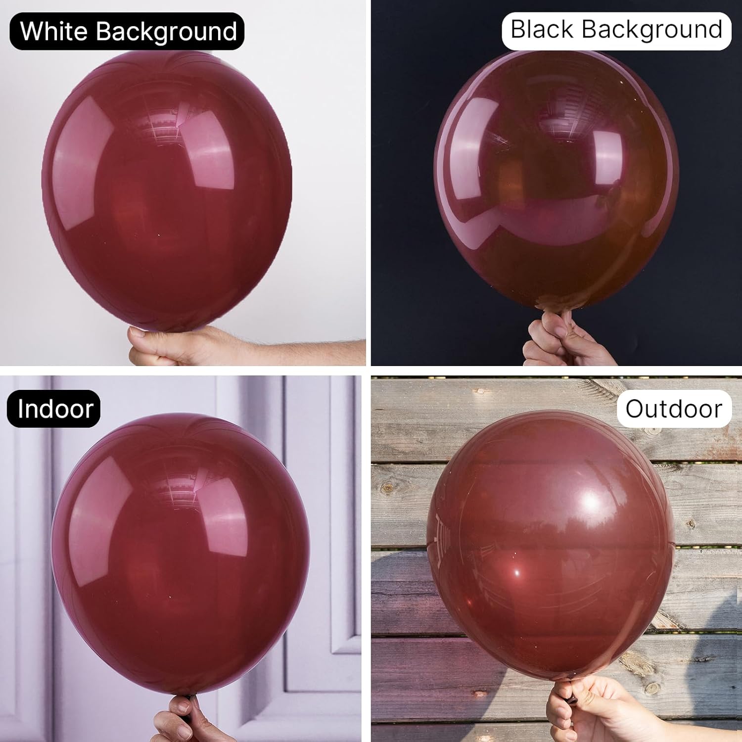 - NON-TOXIC & SAFE: Made of latex. You can control the size of this vine color balloon pack to achieve the effect of the image during the inflation process. These burgundy balloons are perfect burgundy party balloons, maroon graduation decorations, maroon wedding decorations, maroon baby shower decorations, making burgundy balloon arch, burgundy balloon garland, burgundy backdrop