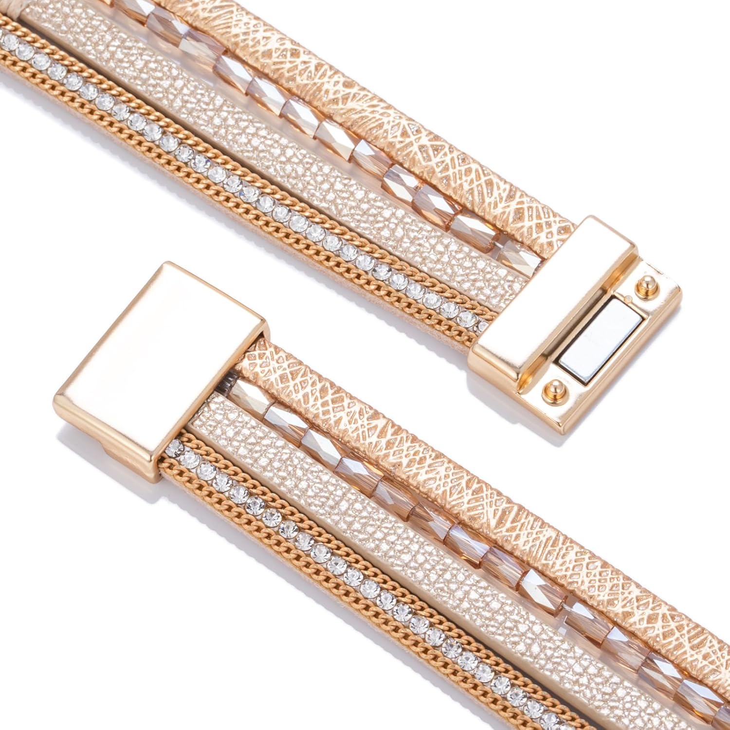 FANCY SHINY Leather Wrap Bracelet Boho Cuff Bangle Bracelets Crystal Bead Bracelet with Magnetic Clasp Jewelry Gifts for Women