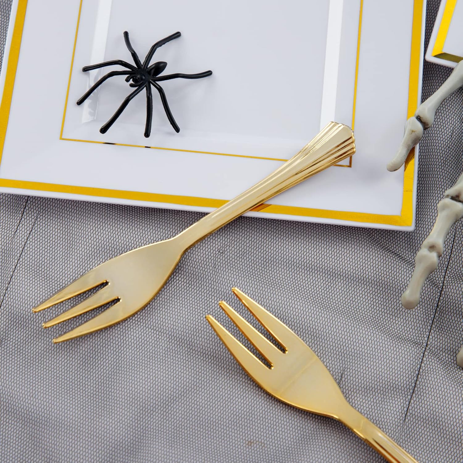 - BEAUTIFUL DESIGN: Simple and modern design, our 100 5" gold dessert forks(mini forks) are match well with 100 6" gold plates. Your guests will amazing as they view the beautifully dinnerware set.