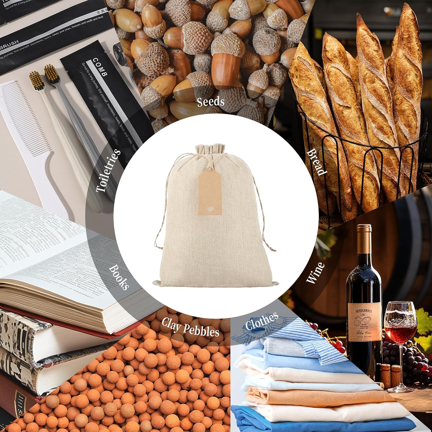 - Generous & Practical Size - These large burlap bags hold all your kitchen stuff - potatoes, garlic, rice, grains, seeds, and nuts. They're the perfect size to keep your pantry neat and fit perfectly on shelves. They’re big enough for lots of groceries and can be reused!