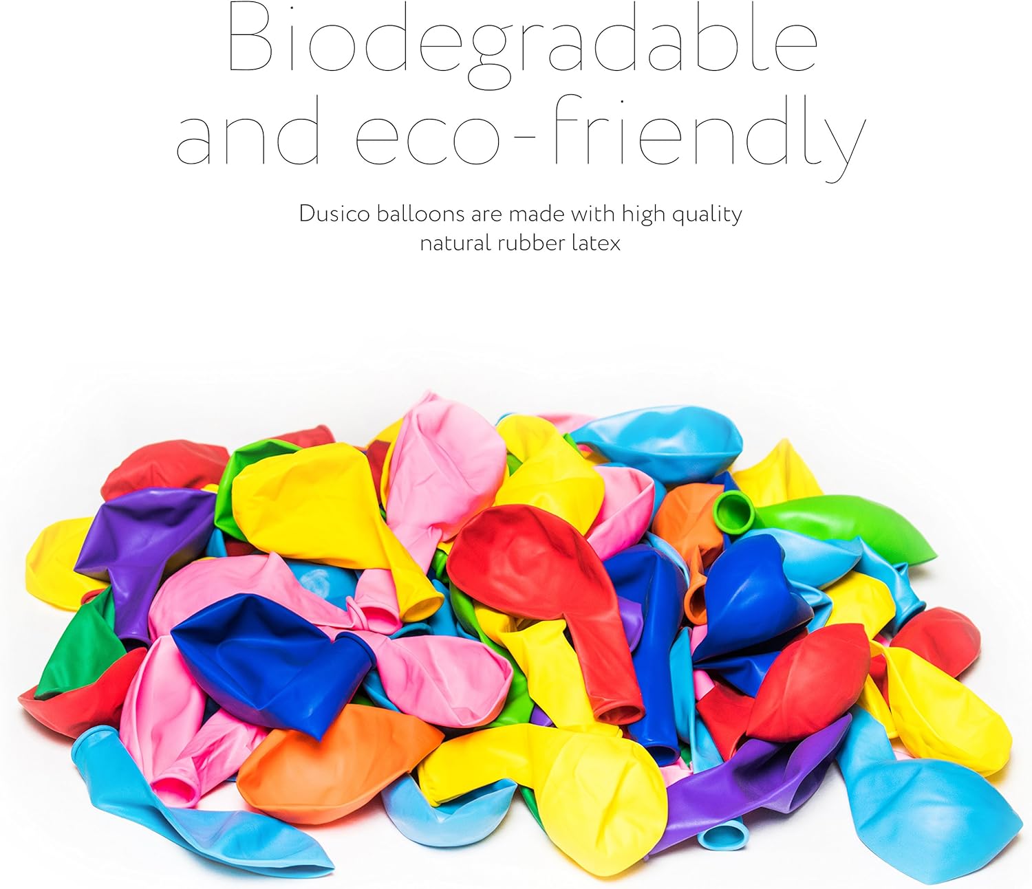 Dusico® Balloons Rainbow Set (100 Pack) 12 Inches, Assorted Bright Colors, Made With Strong Multicolored Latex, For Helium Or Air Use. Kids Birthday Party Decoration Accessory. Easy Blow Up by Mouth