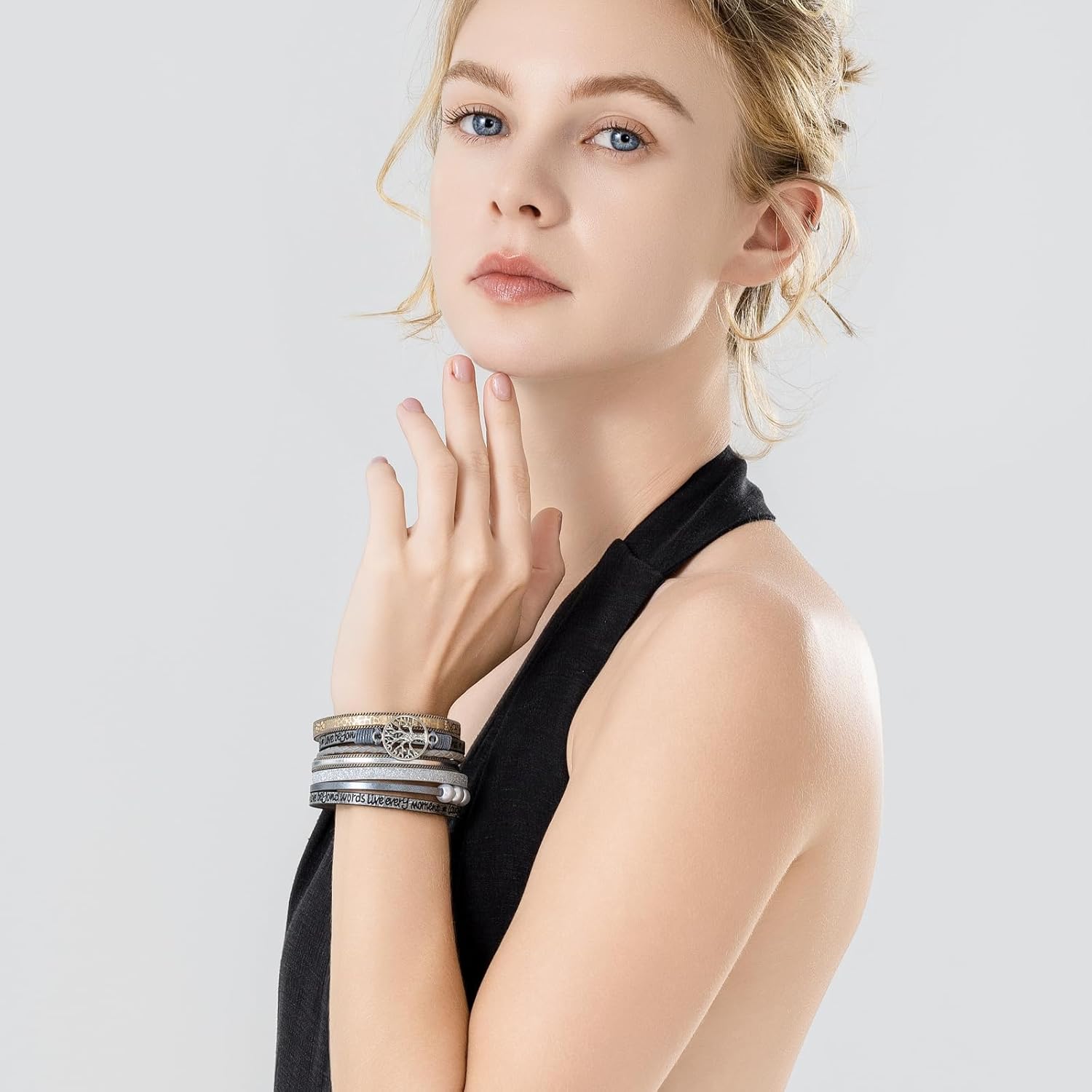 - Quality Control: The cool multi-strand bracelet is made of top grade leather, comfortable to wear, no fading, no pungent smell, stackable with other bracelets.