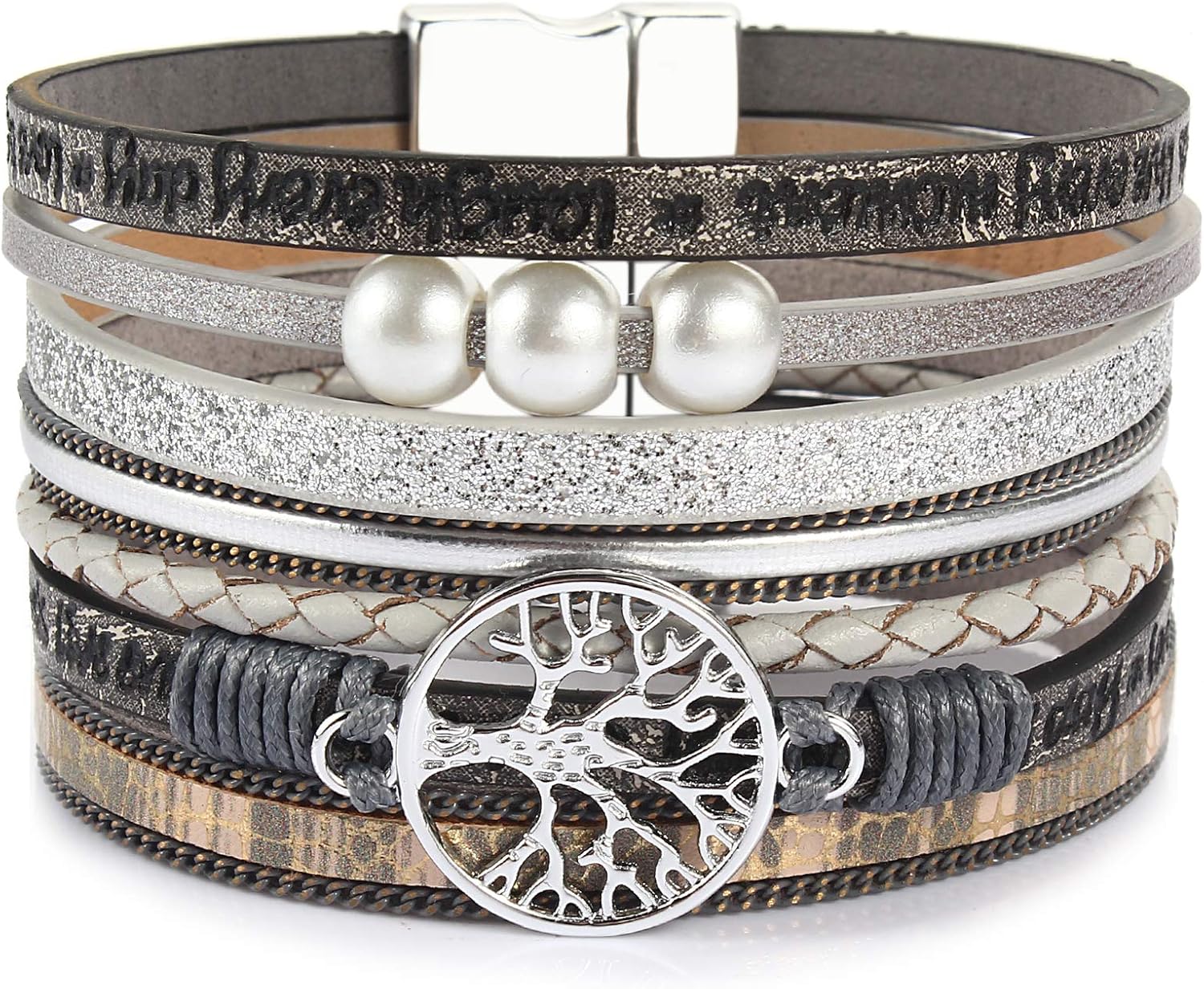 FANCY SHINY Tree of Life Leather Wrap Bracelet Inspirational Cuff Bangles Boho Pearl Bracelets with Magnetic Clasp Unique Jewelry Gifts for Women