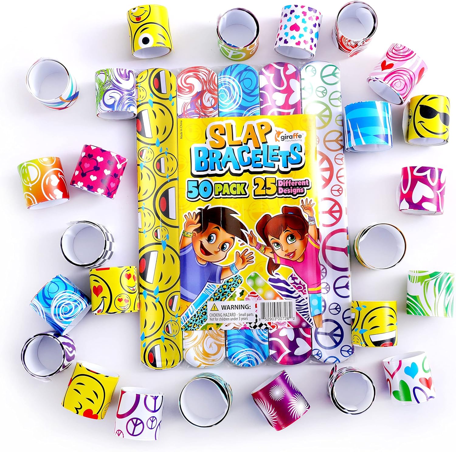 Giraffe Manufacturing 50 Pcs Slap Bracelets for Kids - Colorful Snap Bracelets Kid Bulk Party Favors for Kids, Goodie Bag Fillers Slap Bands, Carnival Prizes, Classroom & Halloween Bulk Toys