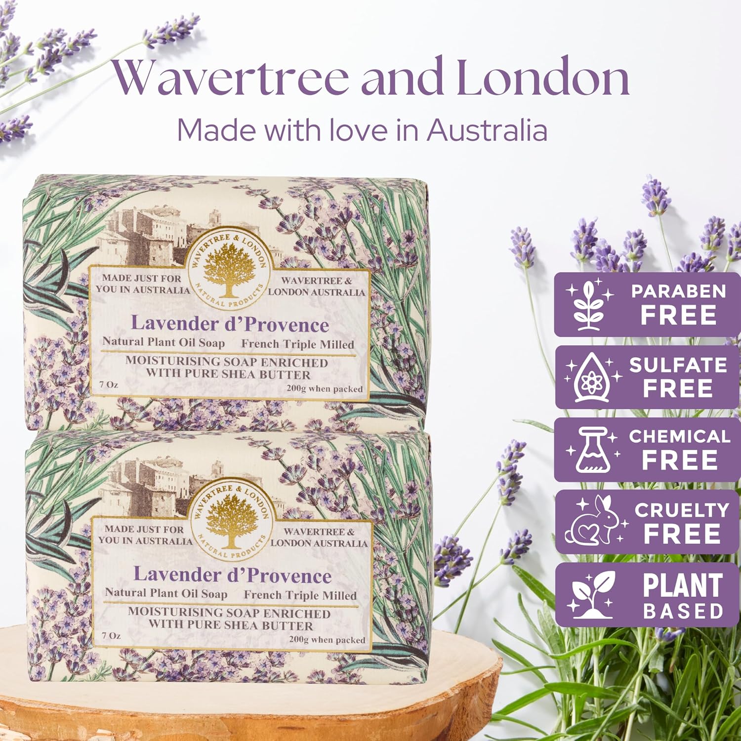 Wavertree & London Lavender Scented Natural Soap Bars (Pack of 2), 7oz Moisturizing French Triple Milled Soap Bars enriched with shea butter - Pure Plant Oil Bath & Body Bar for All Skin Types