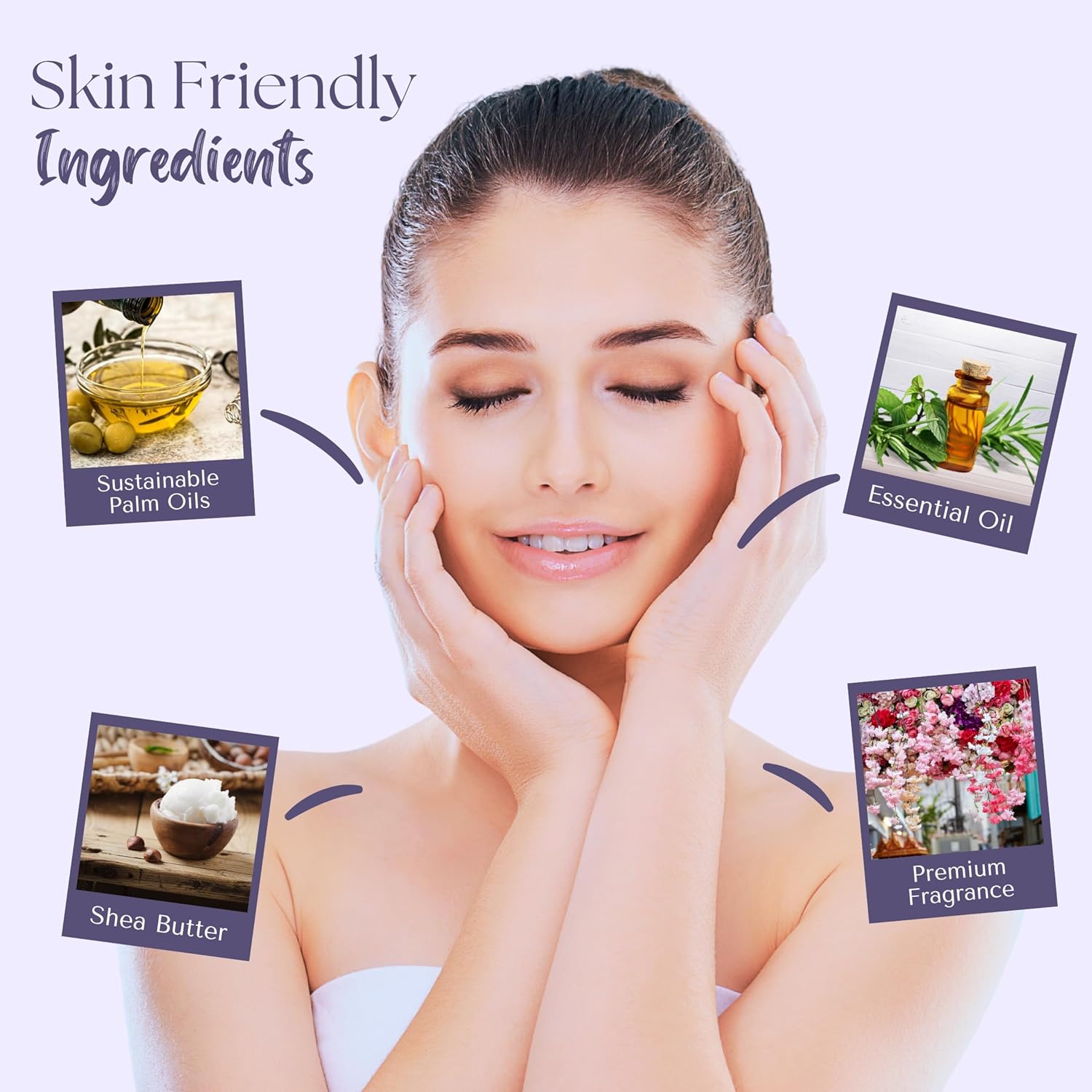 - โ๏ธ FRENCH TRIPLE MILLED SOAP: Our long-lasting moisturizing body soap bars are enriched with glycerin and shea butter and French triple milling process eliminates all impurities and air pockets resulting in a high quality natural soap bars which produces a luxurious creamy and moisturizing lather that leaves the skin feeling soft and smooth.