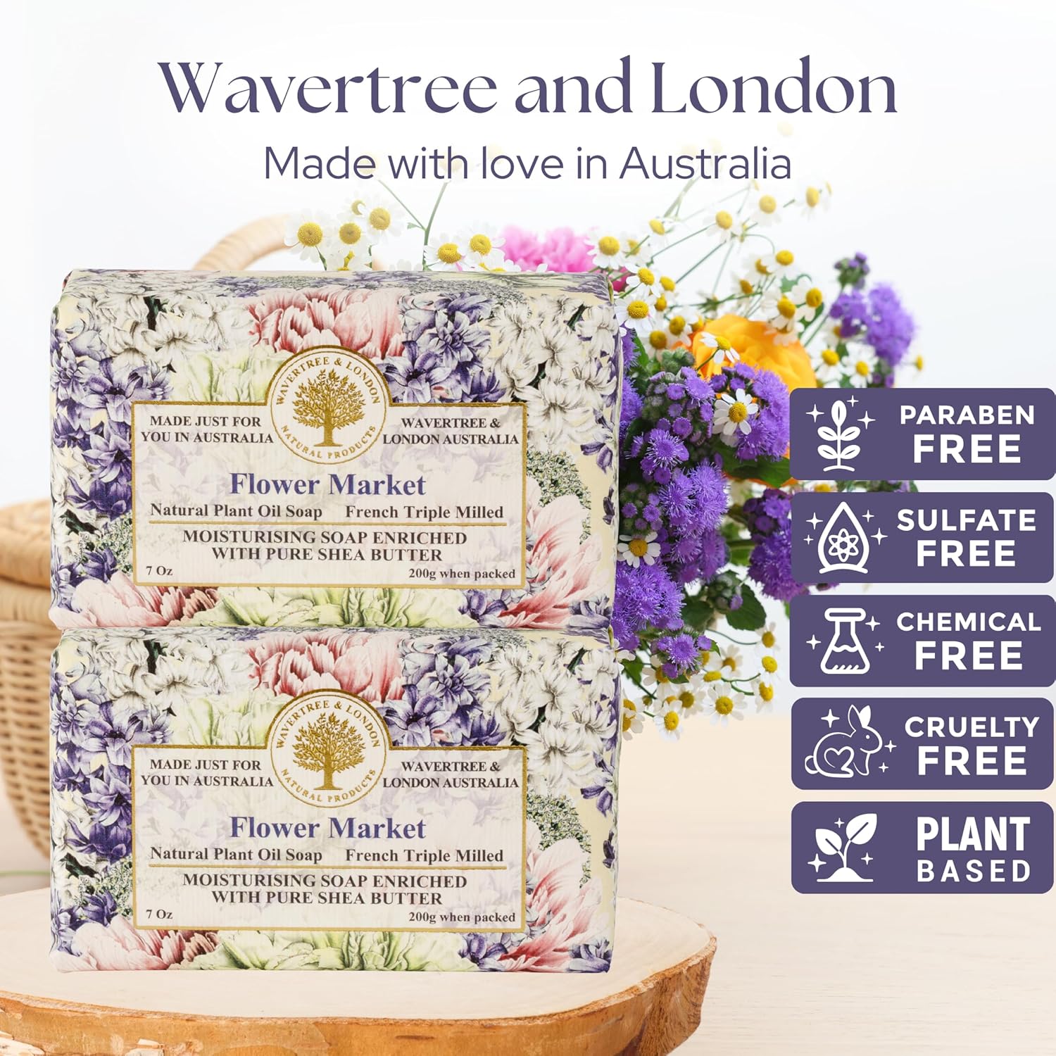 Wavertree & London Flower Market Scented Natural Soap (2 Bars), 7oz Moisturizing French Triple Milled Soap Bars enriched with shea butter - Pure Plant Based Bath & Body Bars for All Skin Types