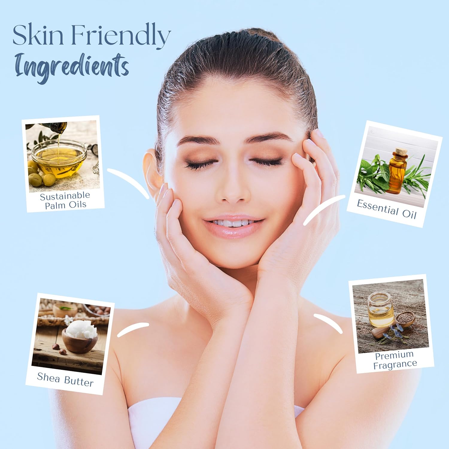 - ๐งผ FRENCH TRIPLE MILLED SOAP: Our long-lasting moisturizing body soap bars are enriched with glycerin and shea butter and French triple milling process eliminates all impurities and air pockets resulting in a high quality natural soap bars which produces a luxurious creamy and moisturizing lather that leaves the skin feeling soft and smooth.