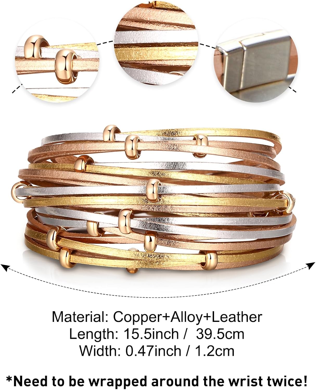 - 【GREAT GIFT & SERVICE】This wrap bracelet is suitable for all age women, perfect as a gift to your wife, mother or friends when Valentine’s Day, Mother’s Day, Birthday, Anniversary, Christmas Day or any special occasions. We are dedicated to providing you with exceptional jewelry and outstanding service. If there is any problem with your purchase, please feel free to contact us, we will try our best to help you.