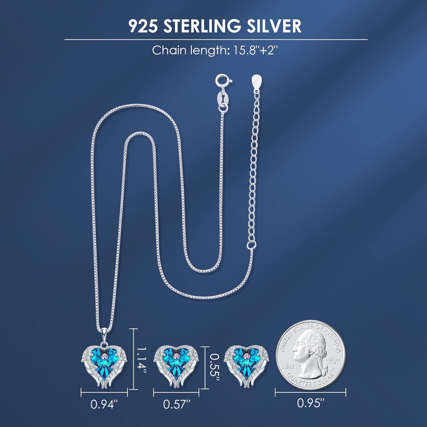 CDE Mothers Day Jewelry Set for Women, Angle Wing Heart Pendant Necklaces and Earrings with Birthstone, Birthday/Anniversary Christmas Jewelry Gift for Women Wife Her