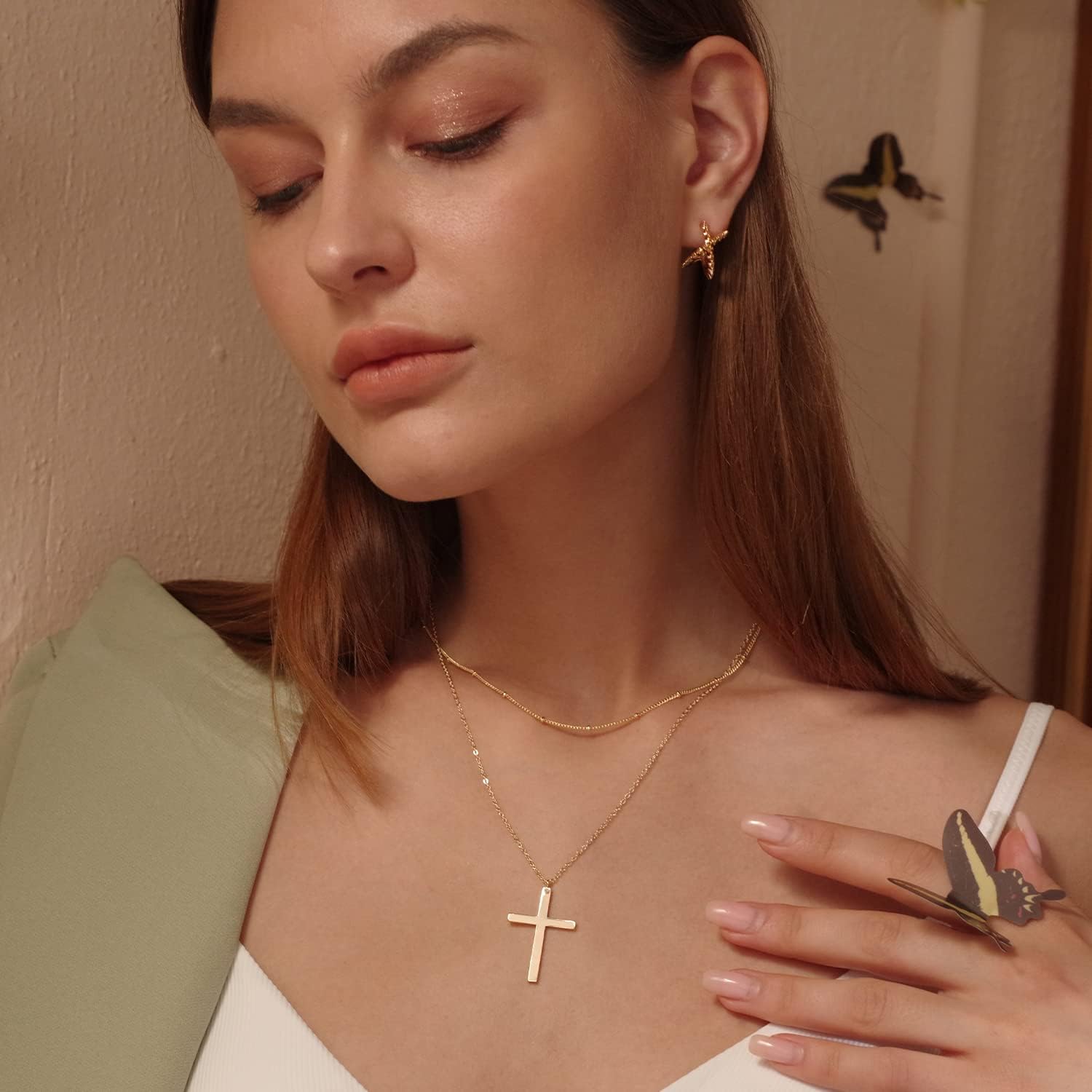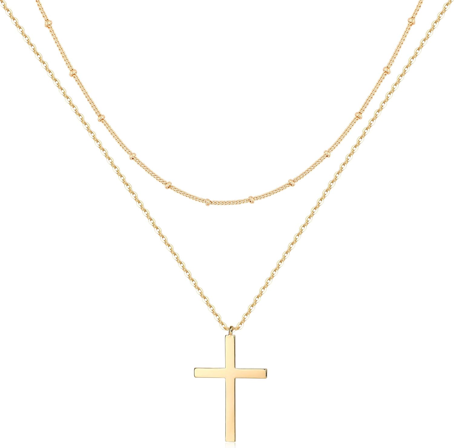 - Material: Our gold cross layered necklace crafted in 18K gold plated, heat and pressure bonded to a high-quality brass core; being absolutely stunning, Handcrafted for everyday wear