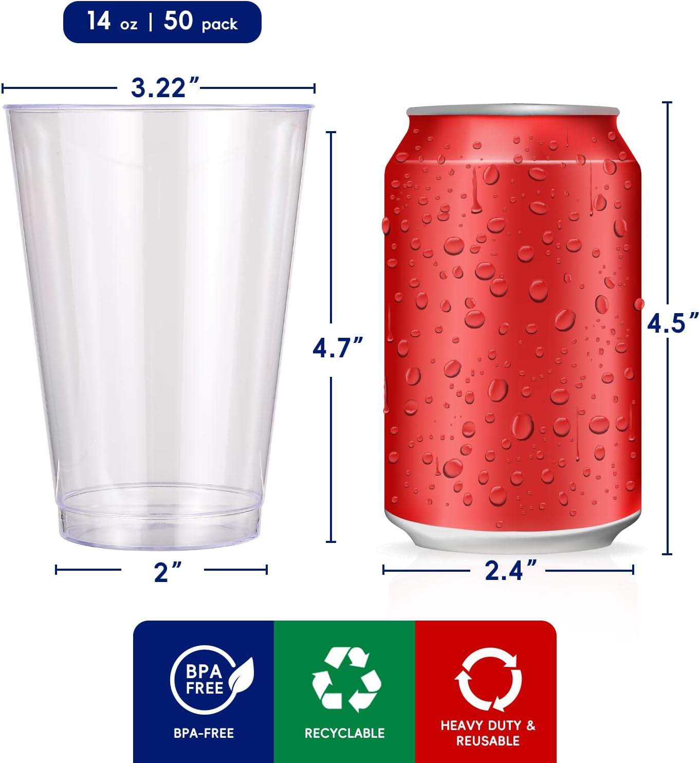 - Convenient Lifestyle: The one-off design of these 14 oz disposable plastic cups makes it easy to clean up after a busy dinner service. It is the good solution for elegance and convenient dining in any venue