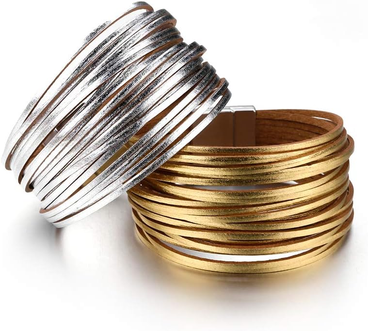 - 【UNIQUE DESIGN】 This women leather bracelet features silver multilayer leather cord, it is made of a strong high-quality alloy clasp so as to easy wear and take off.