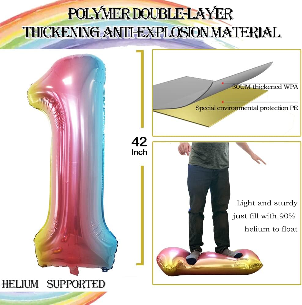 - Package Includes:Package Includes:Rainbow number 1 and number 6 foil balloon,1 inflatable straw,315 inch ribbon,NO HELIUM COME WITH THESE BALLOONS