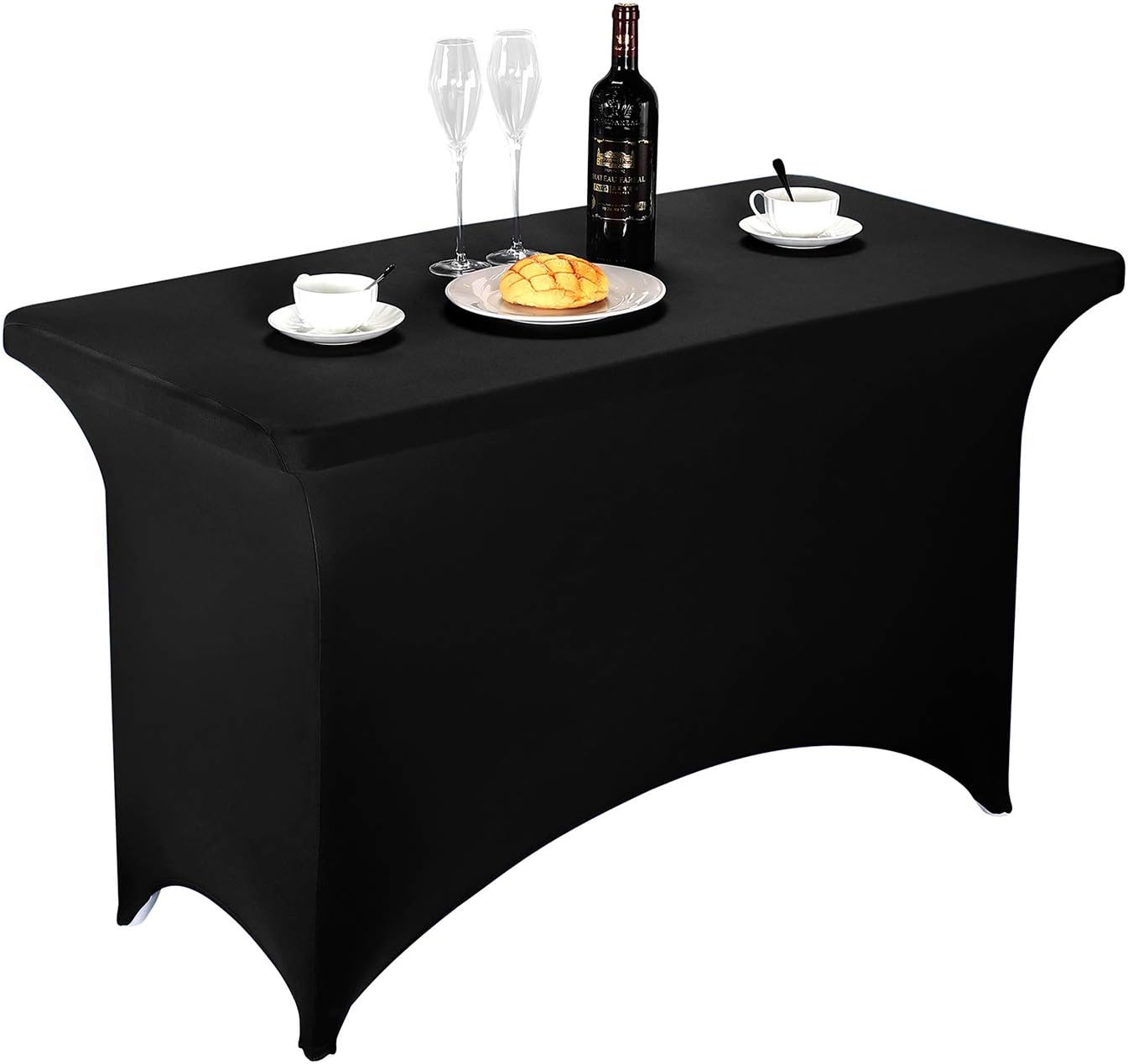 LZY Spandex Fitted Stretch Table Cover for 4ft or 6ft or 8ft Folding Table, Rectangular Cocktail Tablecloth, Perfect for Party or Banquet (4FT Black)