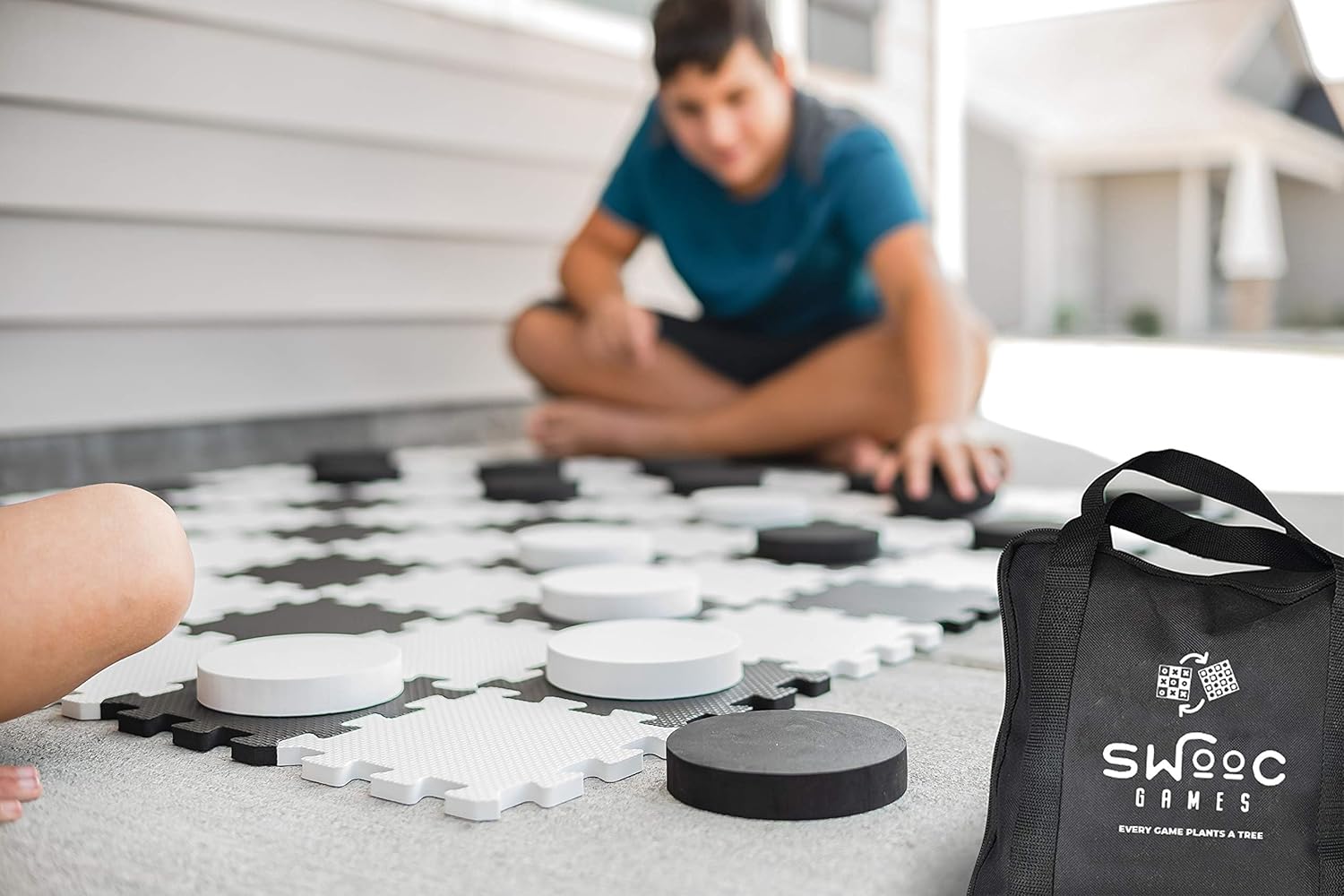 Swooc Gamesยฎ - 2-in-1 Premium Giant Checkers & Tic Tac Toe Game (4ft x 4ft) - 100% High Density EVA Foam Mat & Pieces - Extra Large Checkers Set with Jumbo Checkerboard and Yard Size Tic Tac Toss