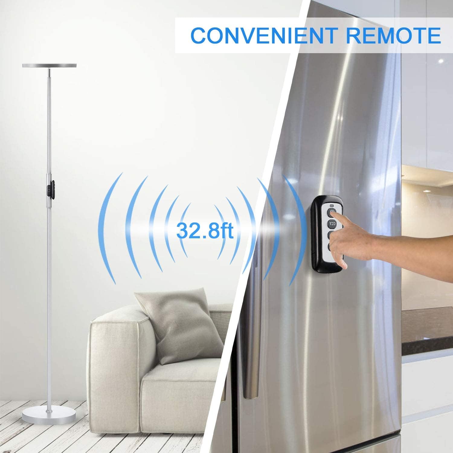 JOOFO Floor Lamp,30W/2400LM Sky LED Modern Torchiere 3 Color Temperatures Super Bright Floor Lamps-Tall Standing Pole Light with Remote & Touch Control for Living Room,Bed Room,Office(Platinum Silver)