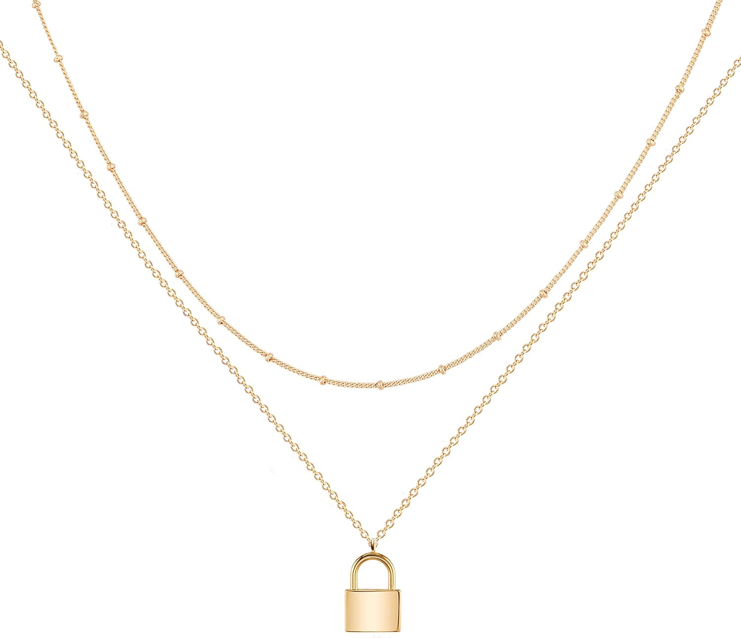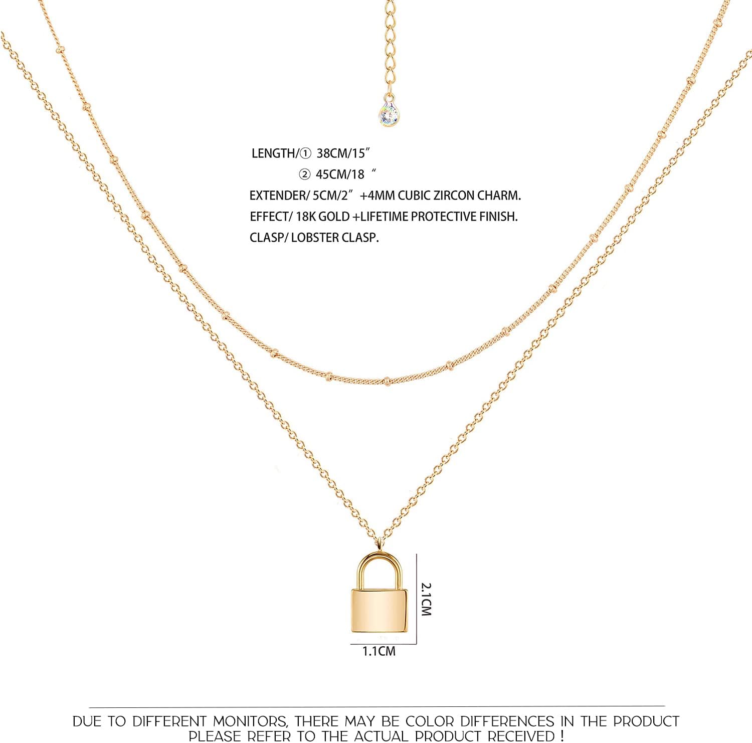 - Material: Our gold lock layered necklace crafted in 18K gold plated, heat and pressure bonded to a high-quality brass core; being absolutely stunning, Handcrafted for everyday wear