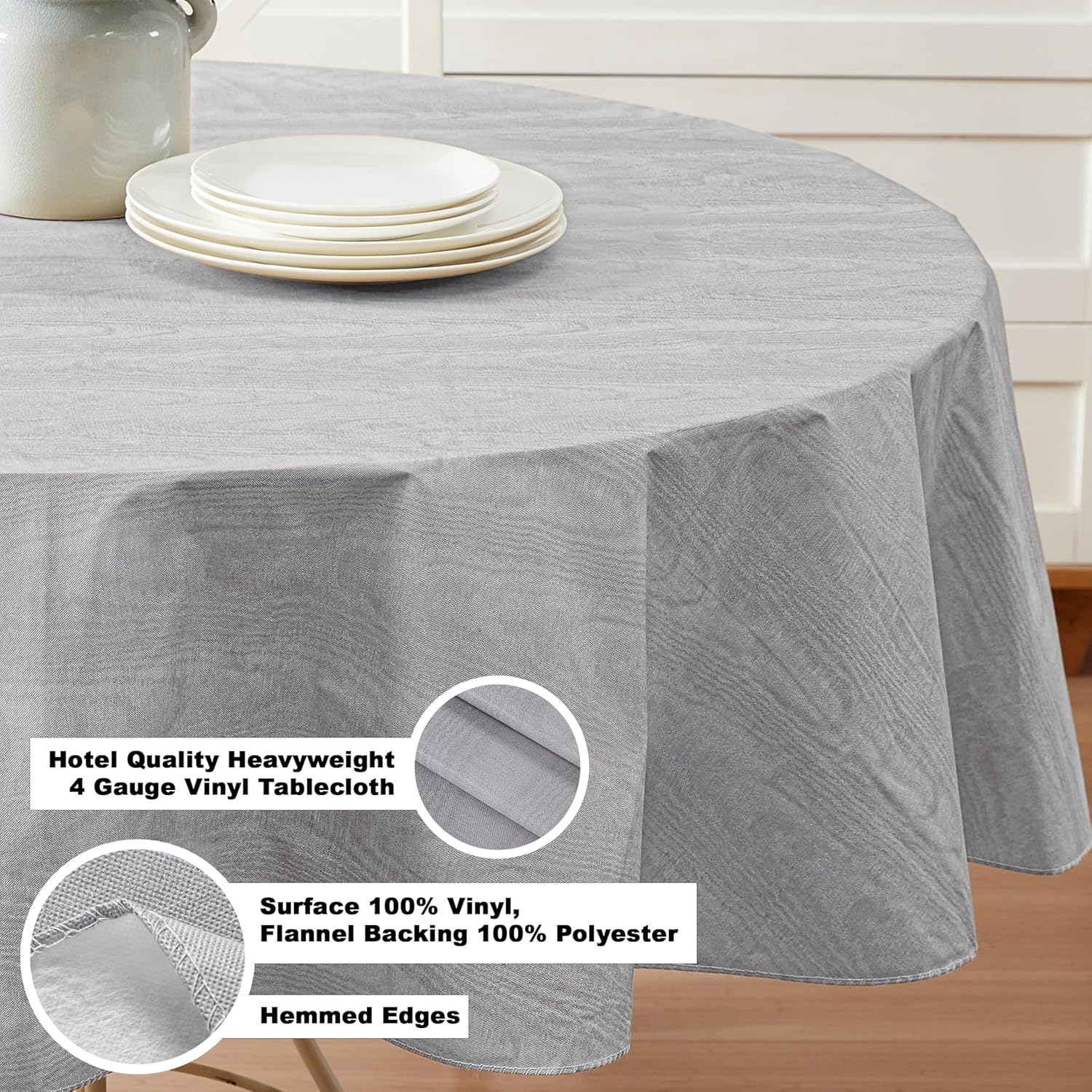 - Newbridge Vinyl Flannel Backed Tablecloth, 70 inch Round, Grey Moire Wavy Solid Design, Waterproof Heavyweight Indoor/Outdoor Table Cover, Wipe Clean Easy Care