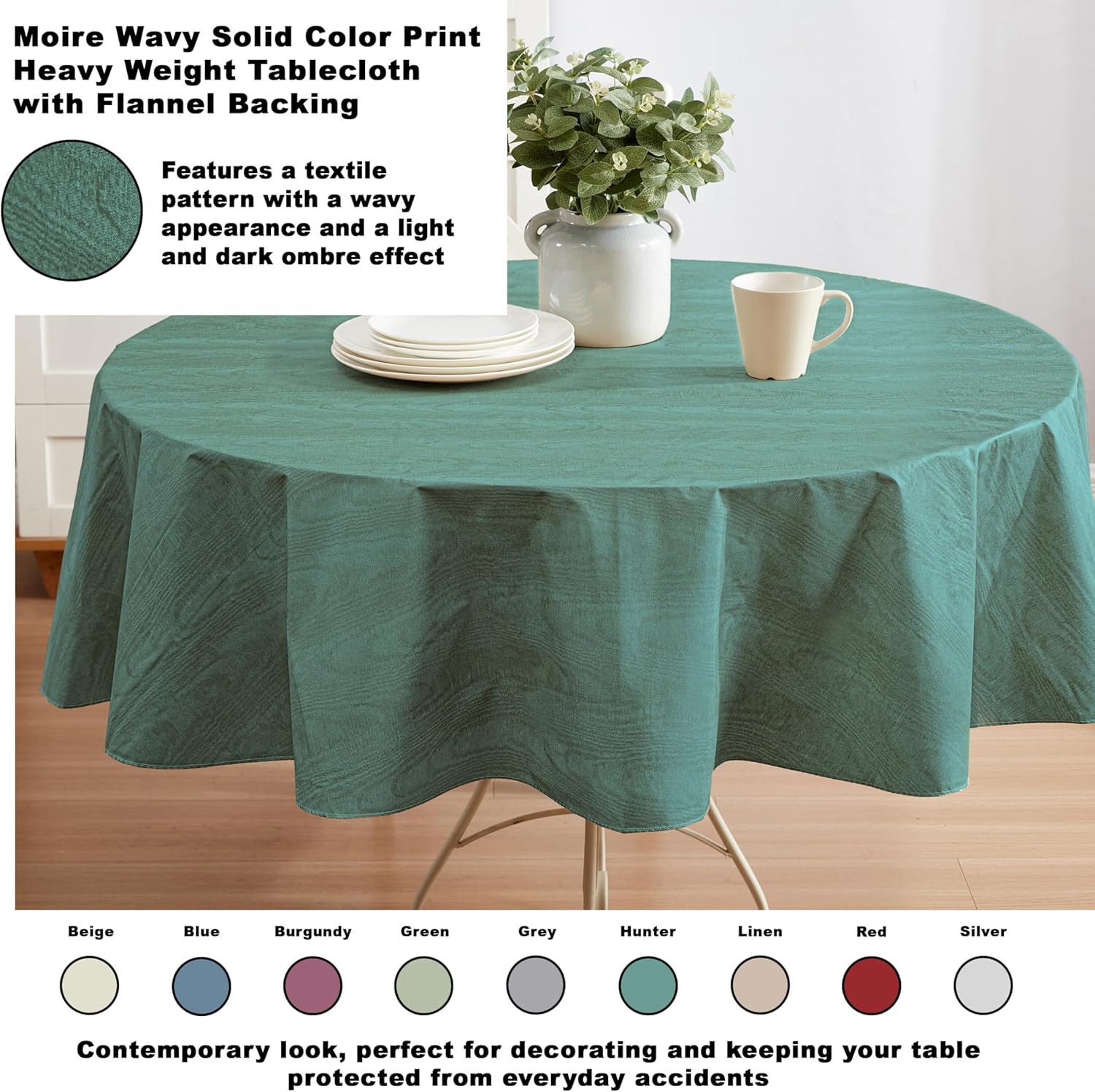- Newbridge Vinyl Flannel Backed Tablecloth, 70 inch Round, Hunter Green Moire Wavy Solid Design, Waterproof Heavyweight Indoor/Outdoor Table Cover, Wipe Clean Easy Care