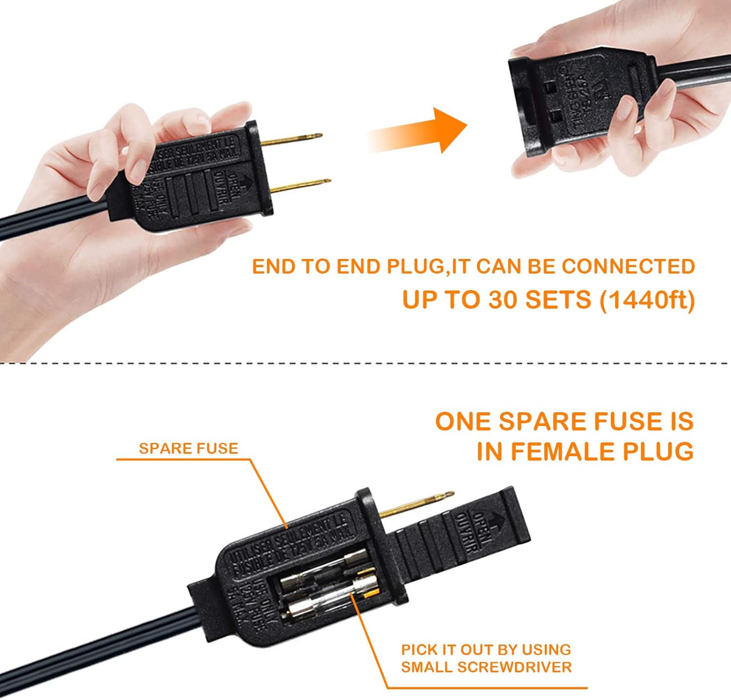 - 【Package List】Each box includes 48ft light string x 1, spare fuse x 1, spare bulb x 1 and a set of paper user manual, if you have any questions about our products ,please let us know.