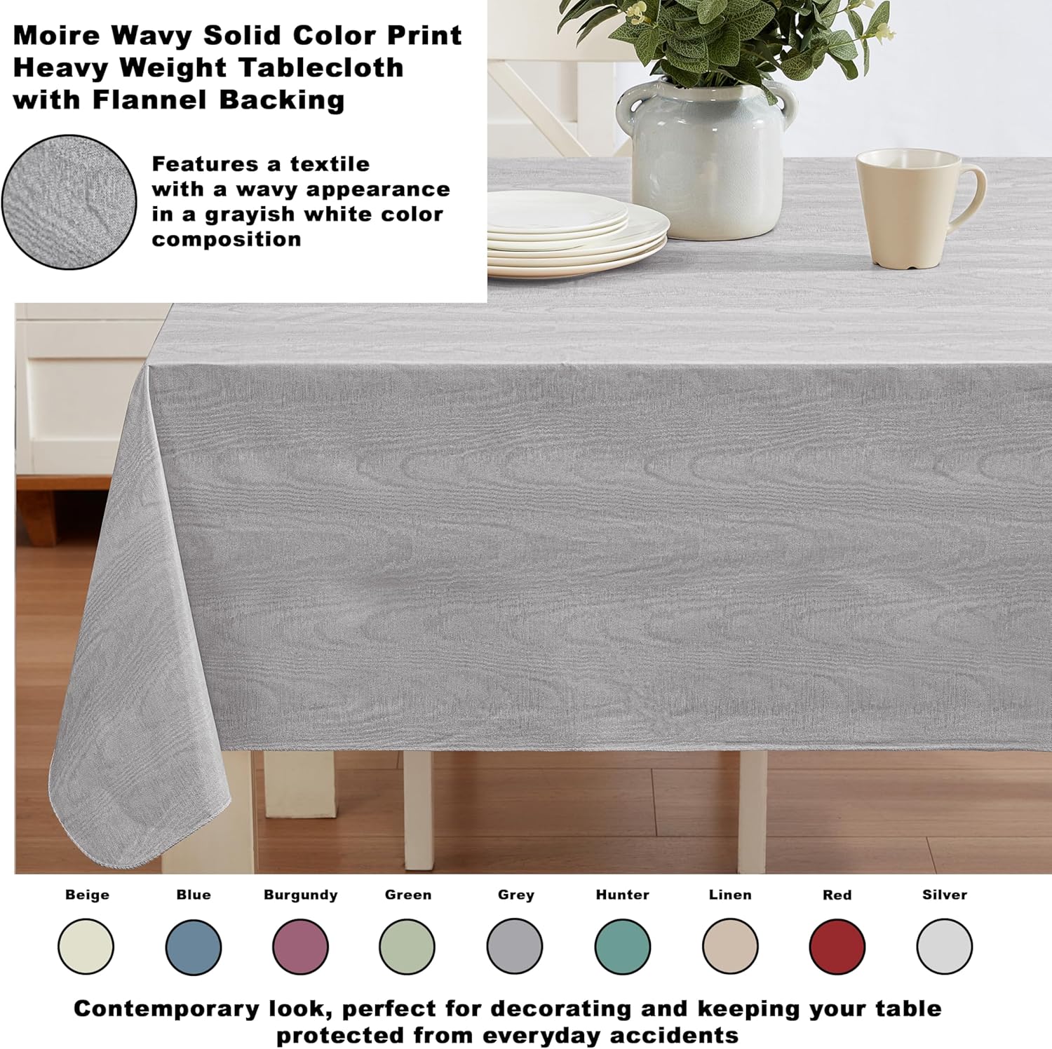 - Newbridge Vinyl Flannel Backed Tablecloth, 52 x 70 Inch Rectangle, Grey Moire Wavy Solid Design, Waterproof Heavyweight Indoor/Outdoor Table Cover, Wipe Clean Easy Care