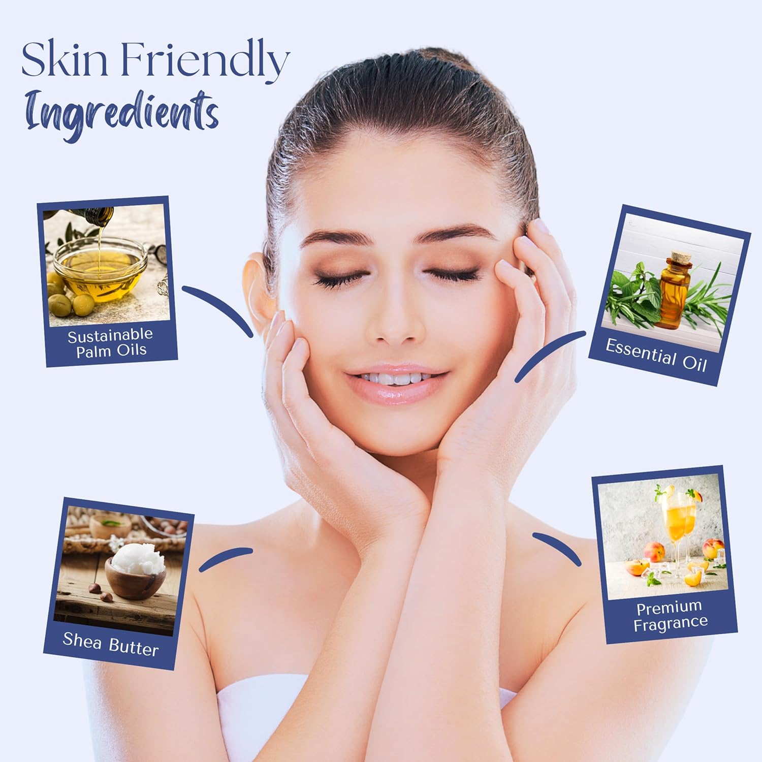 - โ๏ธ FRENCH TRIPLE MILLED SOAP: Our long-lasting moisturizing body soap bars are enriched with glycerin and shea butter and French triple milling process eliminates all impurities and air pockets resulting in a high quality natural soap bars which produces a luxurious creamy and moisturizing lather that leaves the skin feeling soft and smooth.