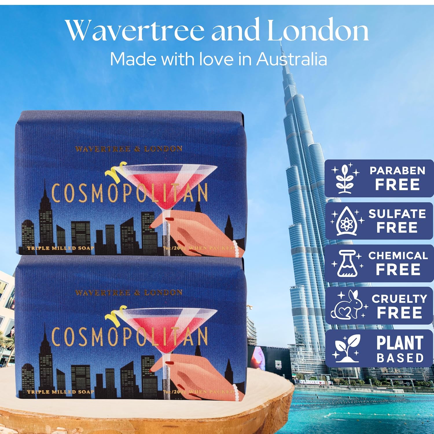 Wavertree & London Cosmopolitan Scented Natural Soap (2 Bars), 7oz Moisturizing French Triple Milled Soap Bars enriched with shea butter - Pure Plant Based Bath & Body Bars for All Skin Types