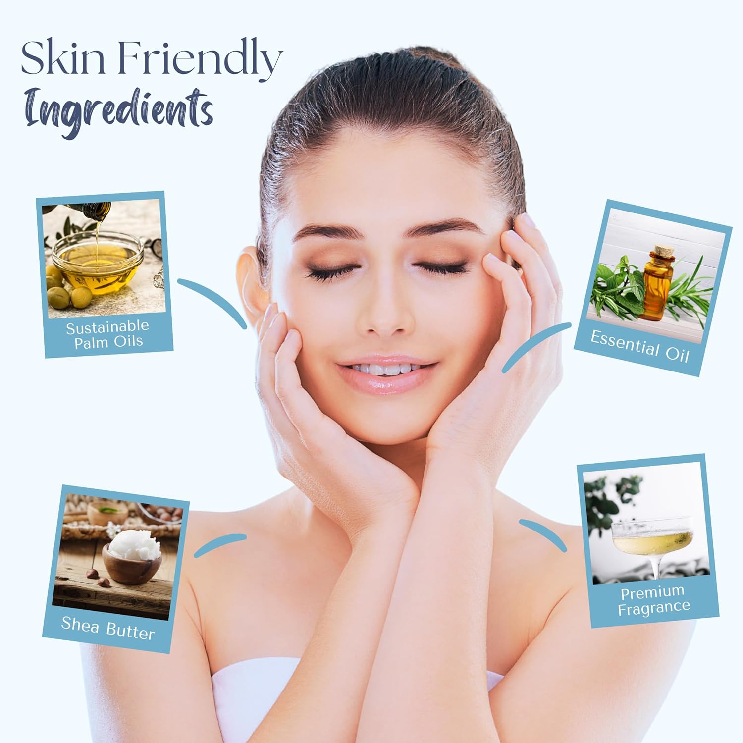 - โ๏ธ FRENCH TRIPLE MILLED SOAP: Our long-lasting moisturizing body soap bars are enriched with glycerin and shea butter and French triple milling process eliminates all impurities and air pockets resulting in a high quality natural soap bars which produces a luxurious creamy and moisturizing lather that leaves the skin feeling soft and smooth.