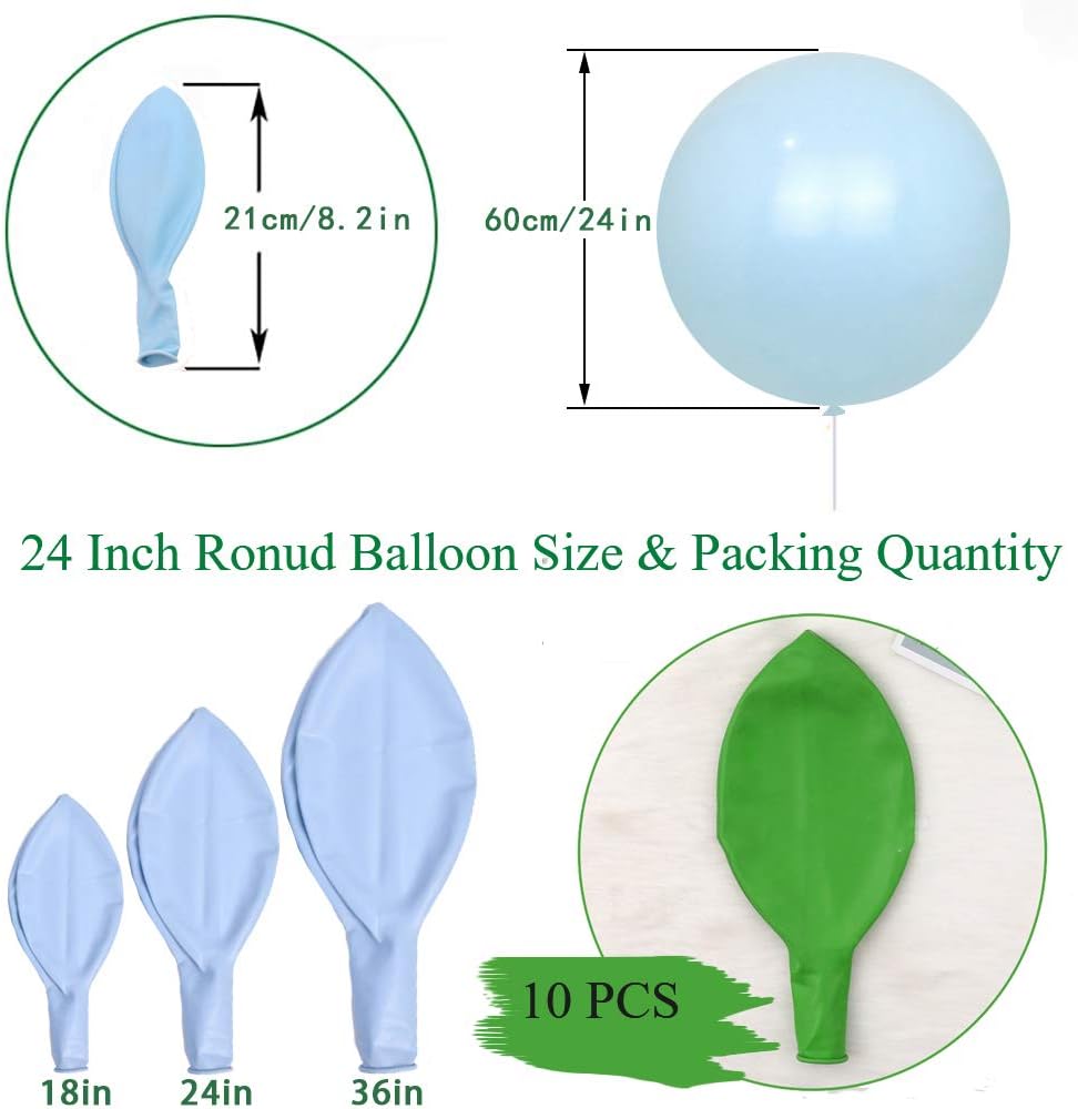 - Standard 24" Balloons: The package contains 10pcs Light Green 24 inch balloons. Thicker, larger, rounder, not oval, Large enough for helium and air aeration