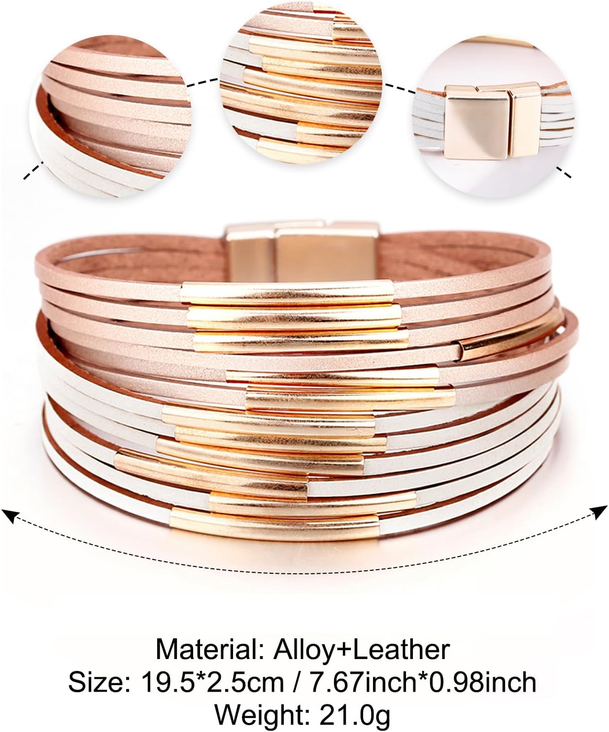 - 【JUST THE RIGHT SIZE】This women leather bracelet measures approximately 7.67" long with width 0.59", bring you an amazing comfortable fit. Fit maximum for 5.5''-6.98" women wrists. You will also like the ultra-light weight without any burden feel while wearing the leather bracelet all day.