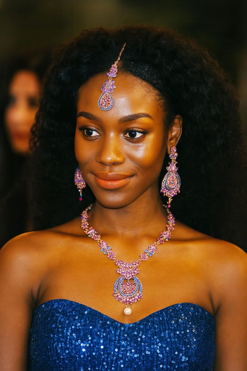 Touchstone Indian jewelry sets for women maang tikka wedding guest gold necklace bollywood jewellery set pageant elegant prom bride accessories western crystal chunky rhinestone necklaces