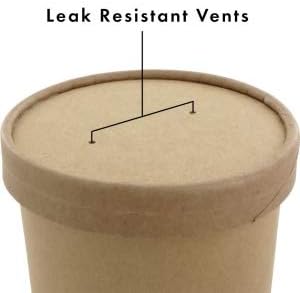 Eco Friendly Microwavable Kraft Soup Bowls - Soup Cups | Disposable Food To-Go Containers-Soup Containers With Airtight Lids. Great For Restaurants, Take Outs, Or To-Go Lunch 25/Pack (16 oz, Brown)