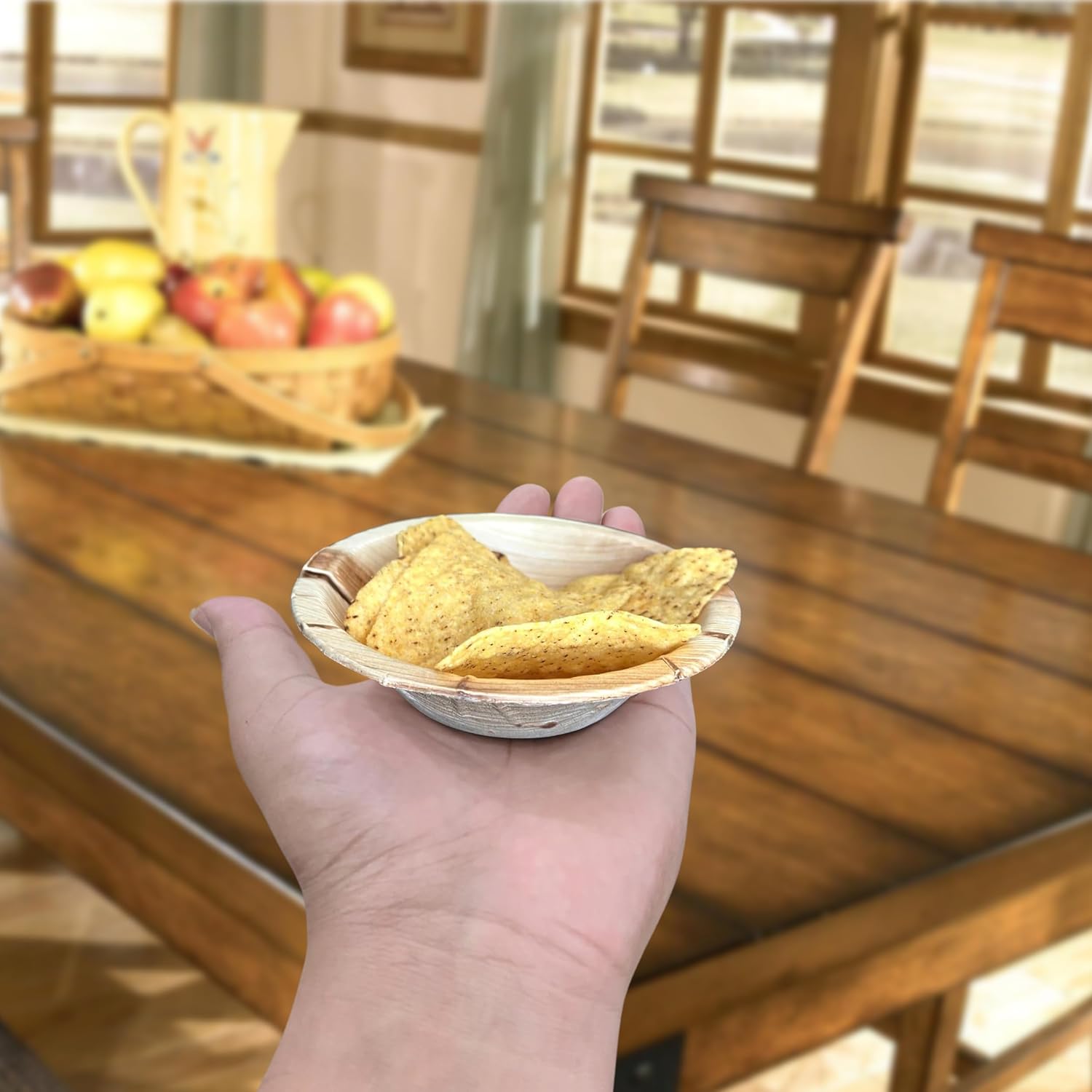 Raj Disposable Palm Leaf Bowls (100 Count, 5" Bowls) Strong Bowl Like Bamboo Party Bowl - Decorative Compostable Tableware for Lunch, Dinner, Birthday, Outdoor, BBQ, Picnic, Parties