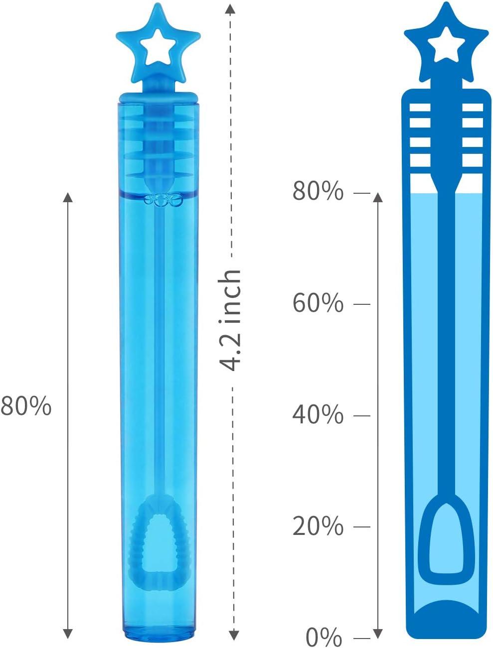 - Decent Size for everyone: It's hard to imagine that a 4-inch tube can provide so much joy.Not just perfect for little hands, but fits everyone. Each wand contains a 2 oz bubble solution and it can provide 30mins playtime, Not too much bubble liquid to clean up when kids drop the container. Not as messy as the traditional bubbles.Easy to use, refillable, very useful, and practical.
