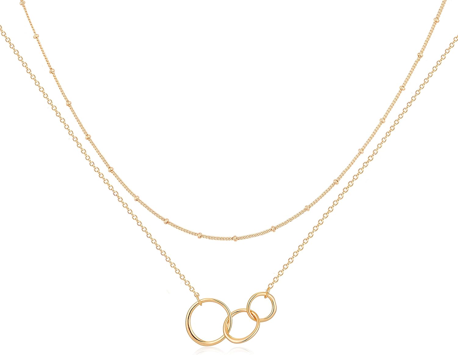 - Material: Our gold link circle layered necklace crafted in 18K gold plated, heat and pressure bonded to a high-quality brass core; being absolutely stunning, Handcrafted for everyday wear